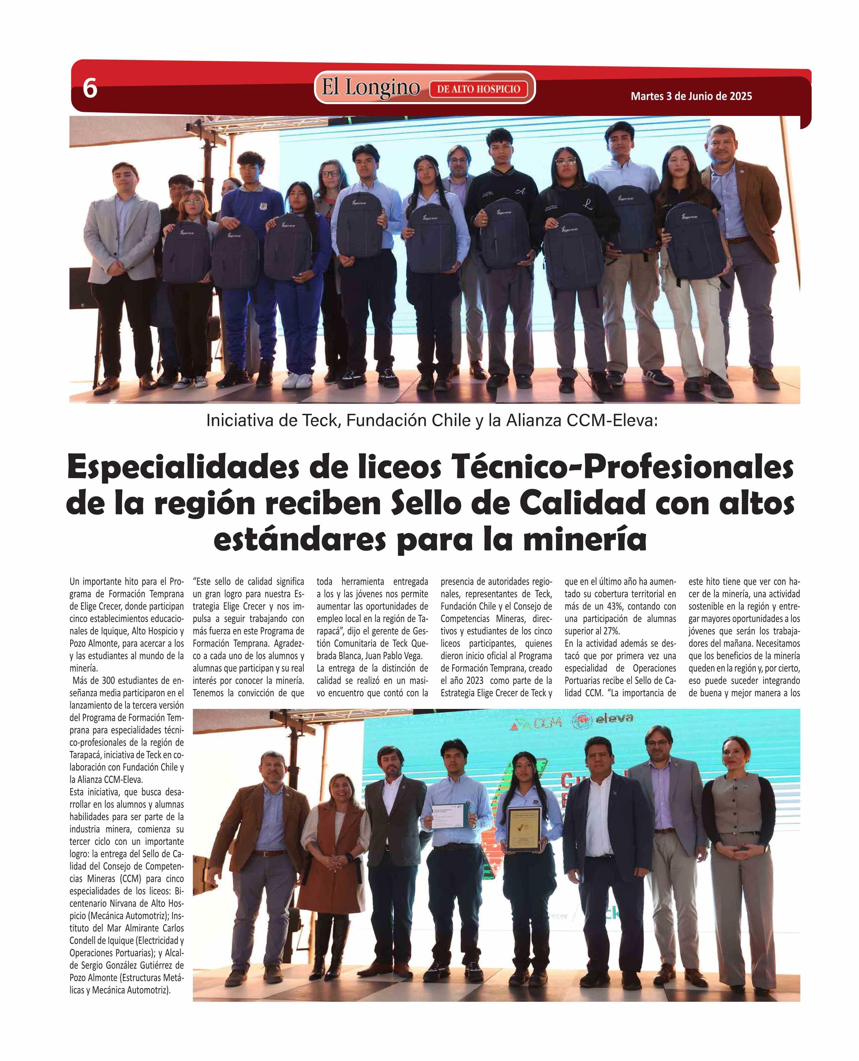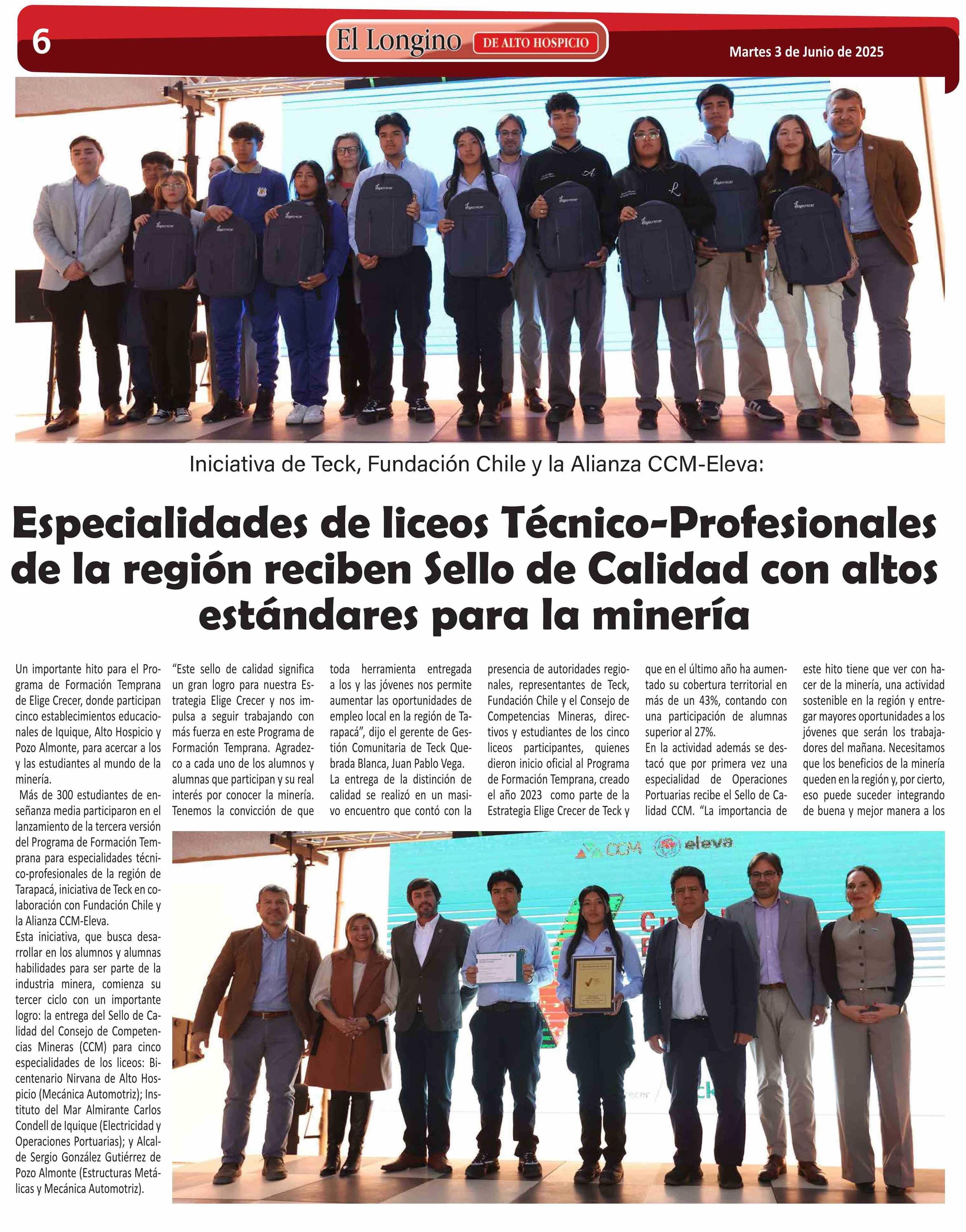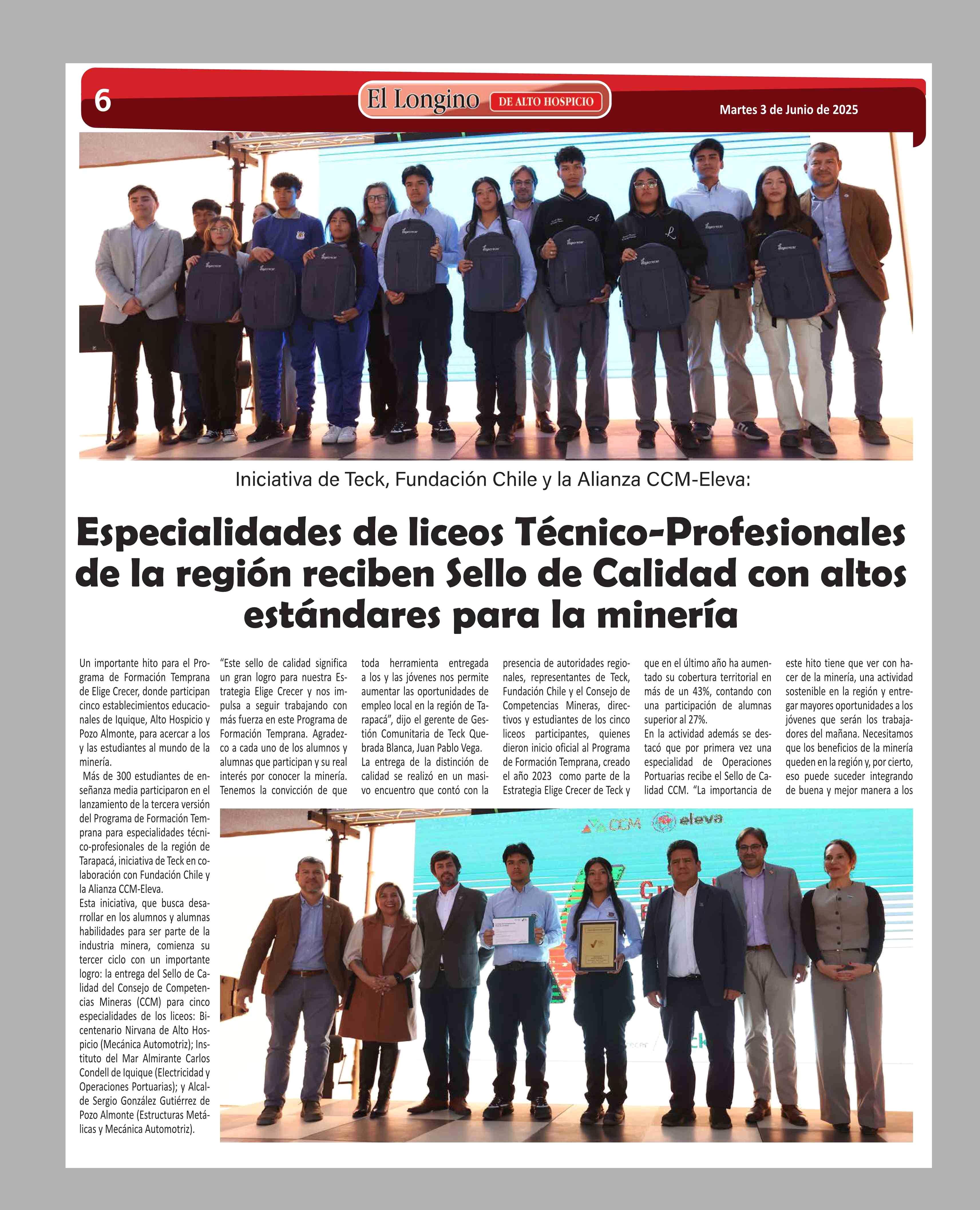 Título: Especialidades de liceos Técnico-Profesionales de la región reciben Sello de Calidad con altos estándares para la minería