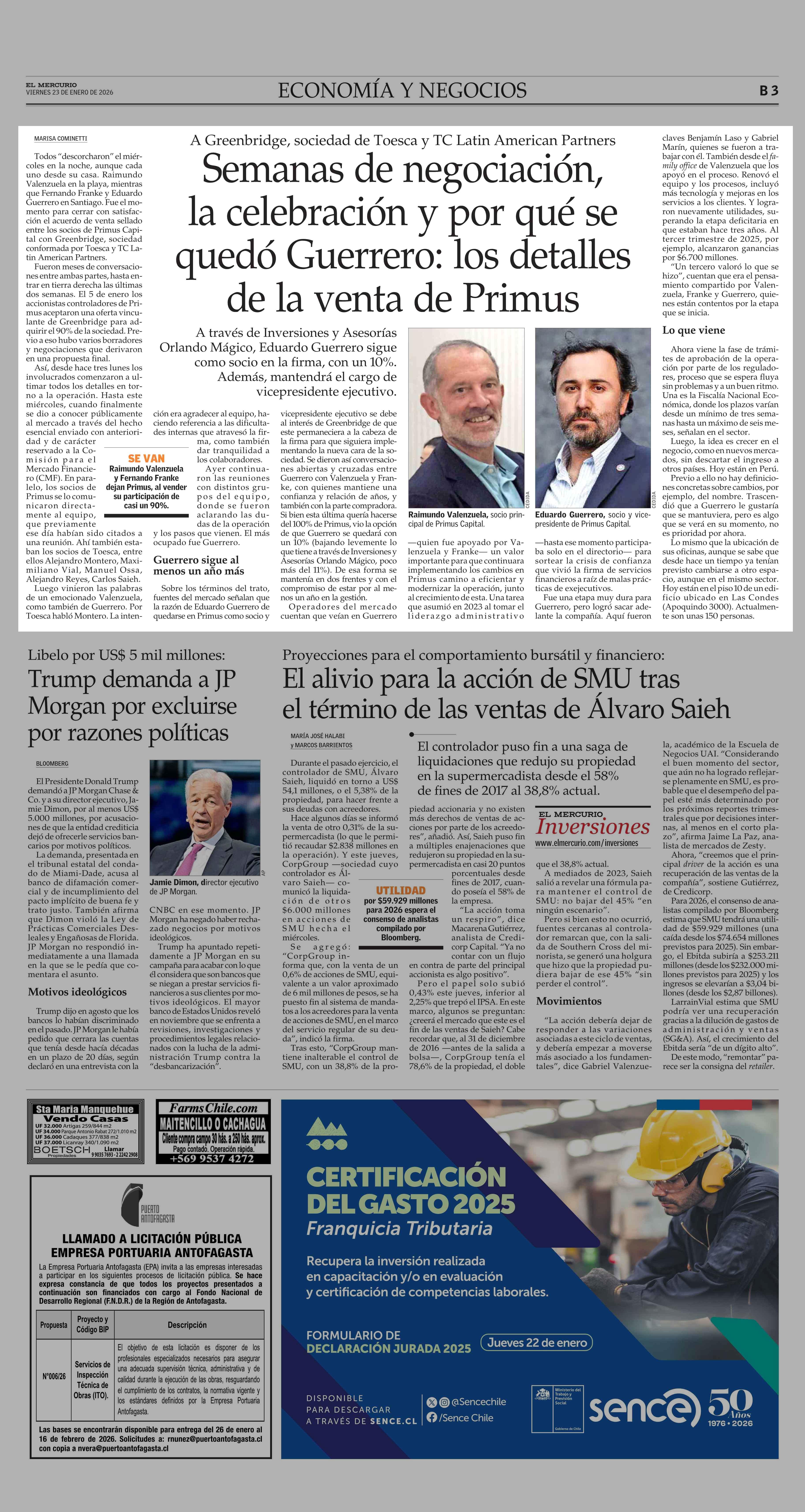 Semanas de negociación, la celebración y por qué se quedó Guerrero: los detalles de la venta de Primus 23-01-2026 El Mercurio |