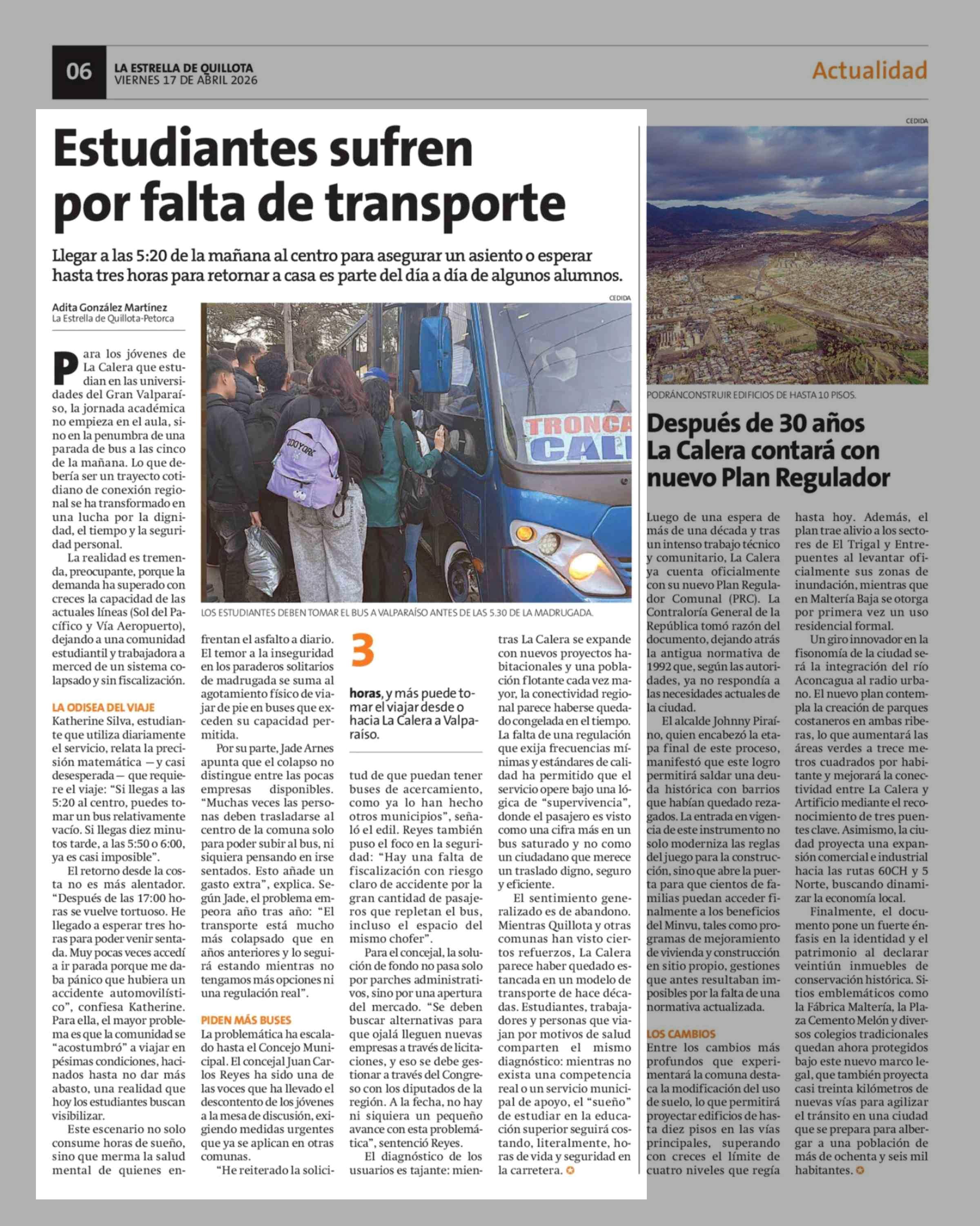 Estudiantes sufren por falta de transporte 17-04-2026 La Estrella de Quillota |