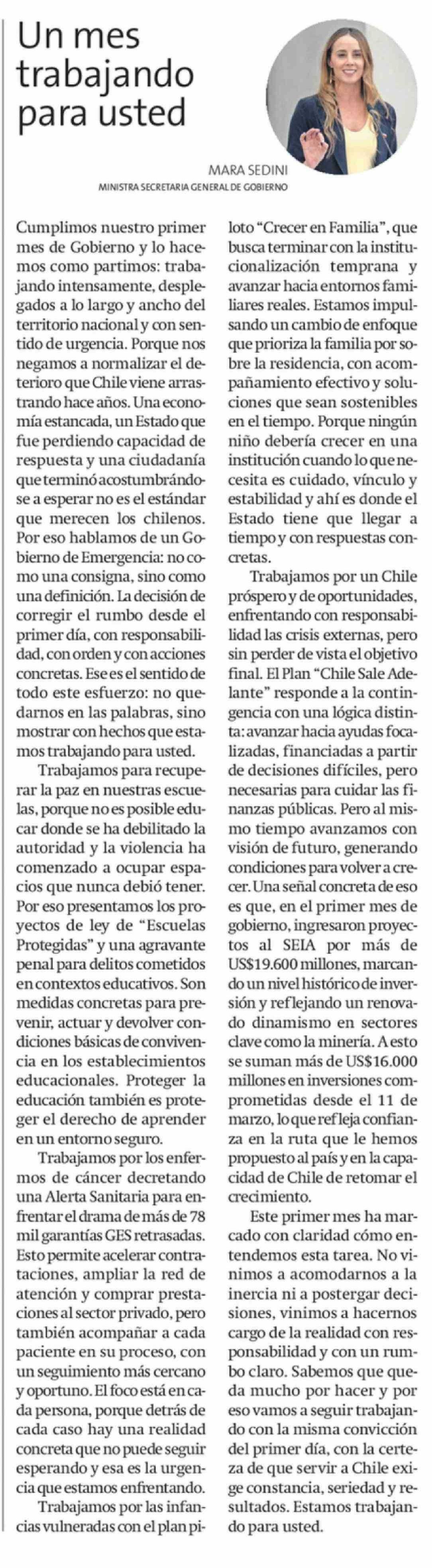Título: Columnas de Opinión: Un mes trabajando para usted