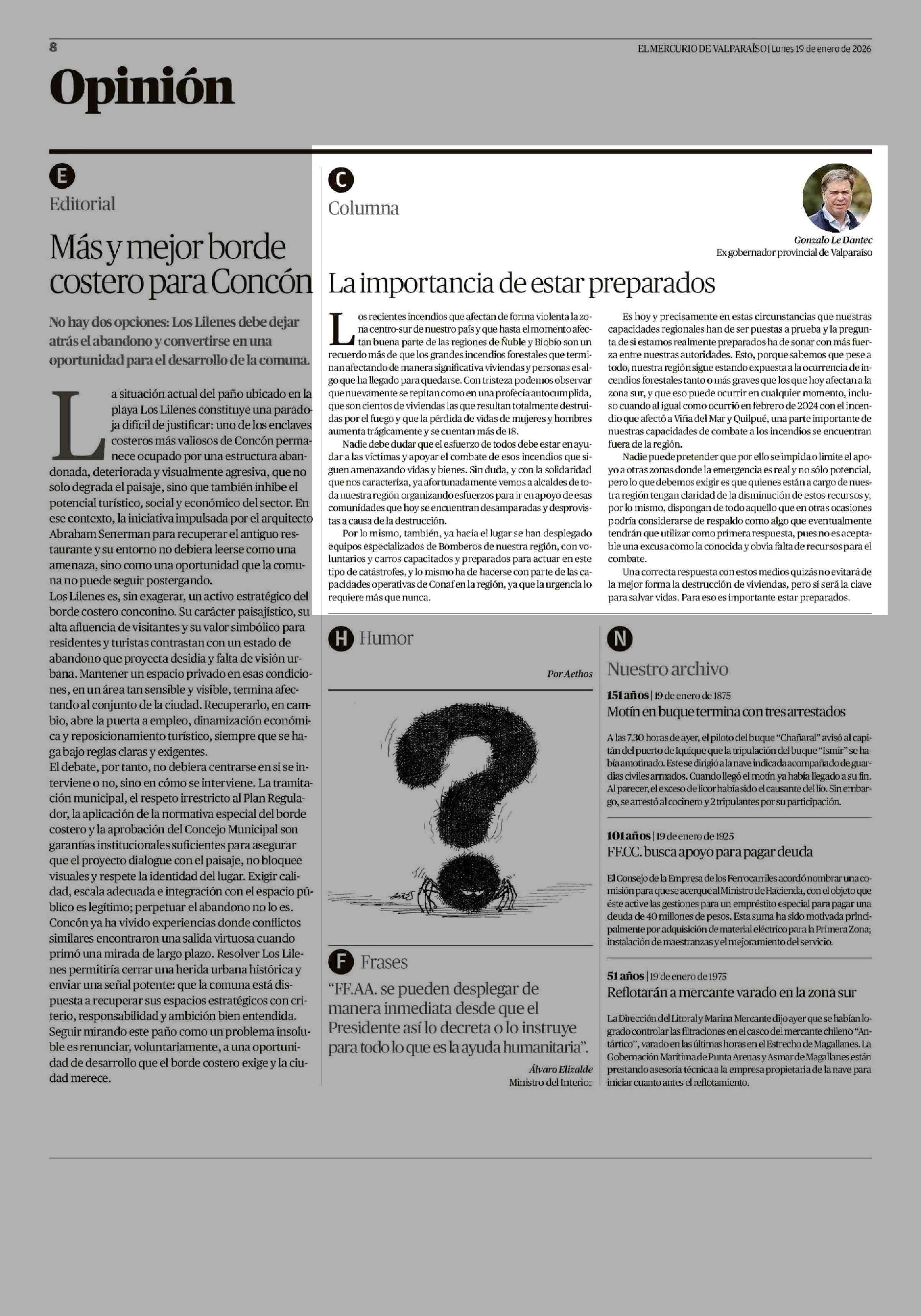 Fecha: 19-01-2026 Sector: Columnas de Opinión Región: Región de Valparaíso