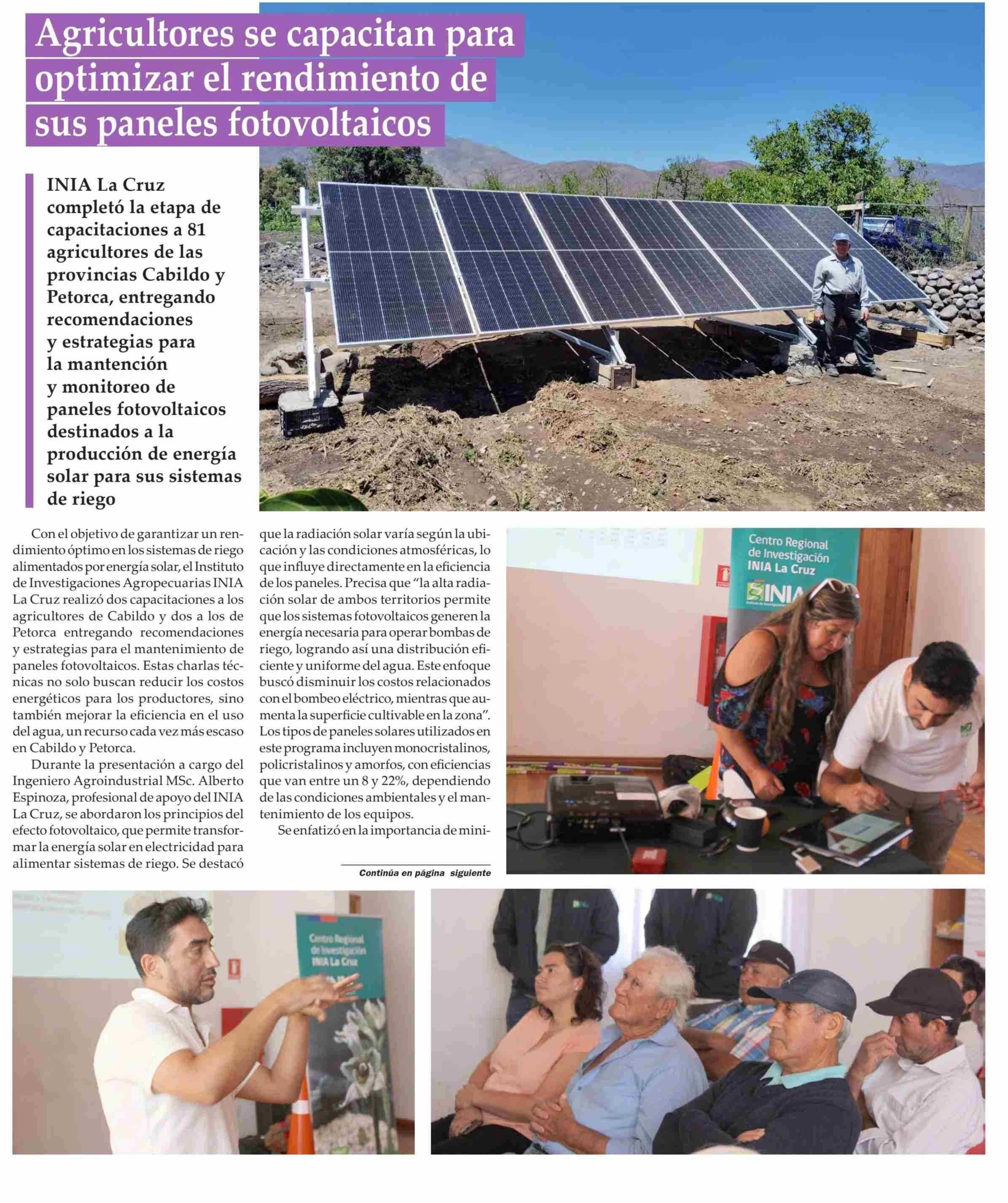 | Título: | Agricultores se capacitan para optimizar el rendimiento de sus paneles fotovoltaicos |