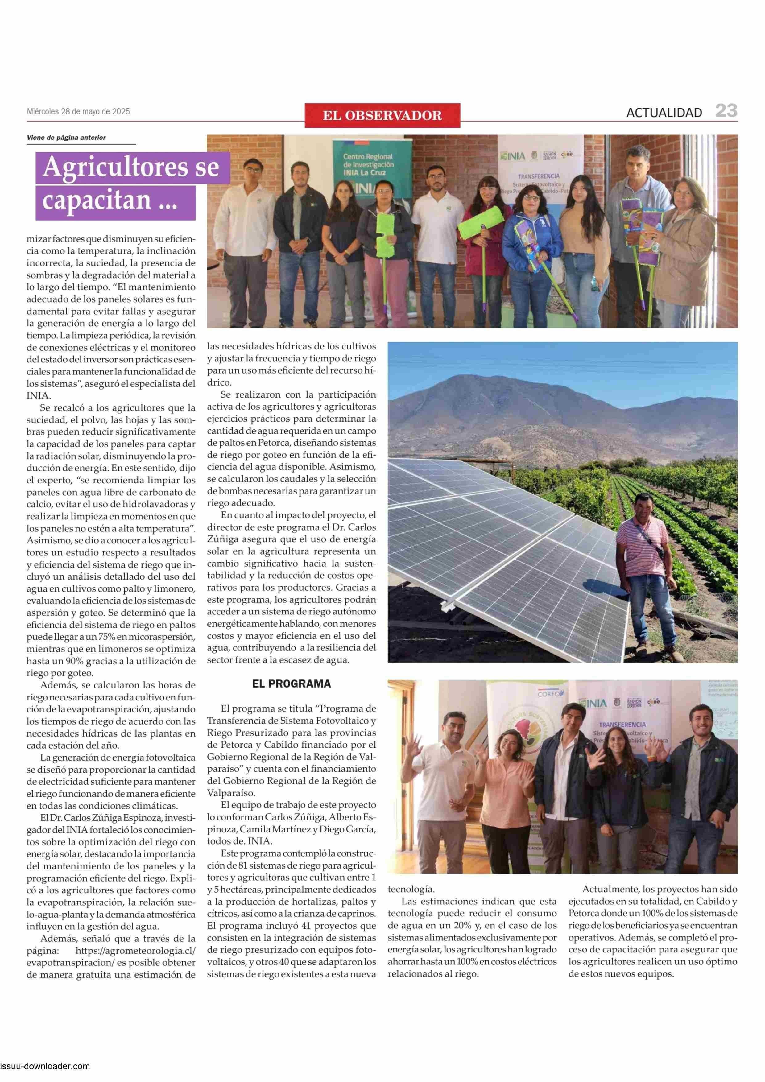 Agricultores se capacitan para optimizar el rendimiento de sus paneles fotovoltaicos 28-05-2025 El Observador Vespertino |