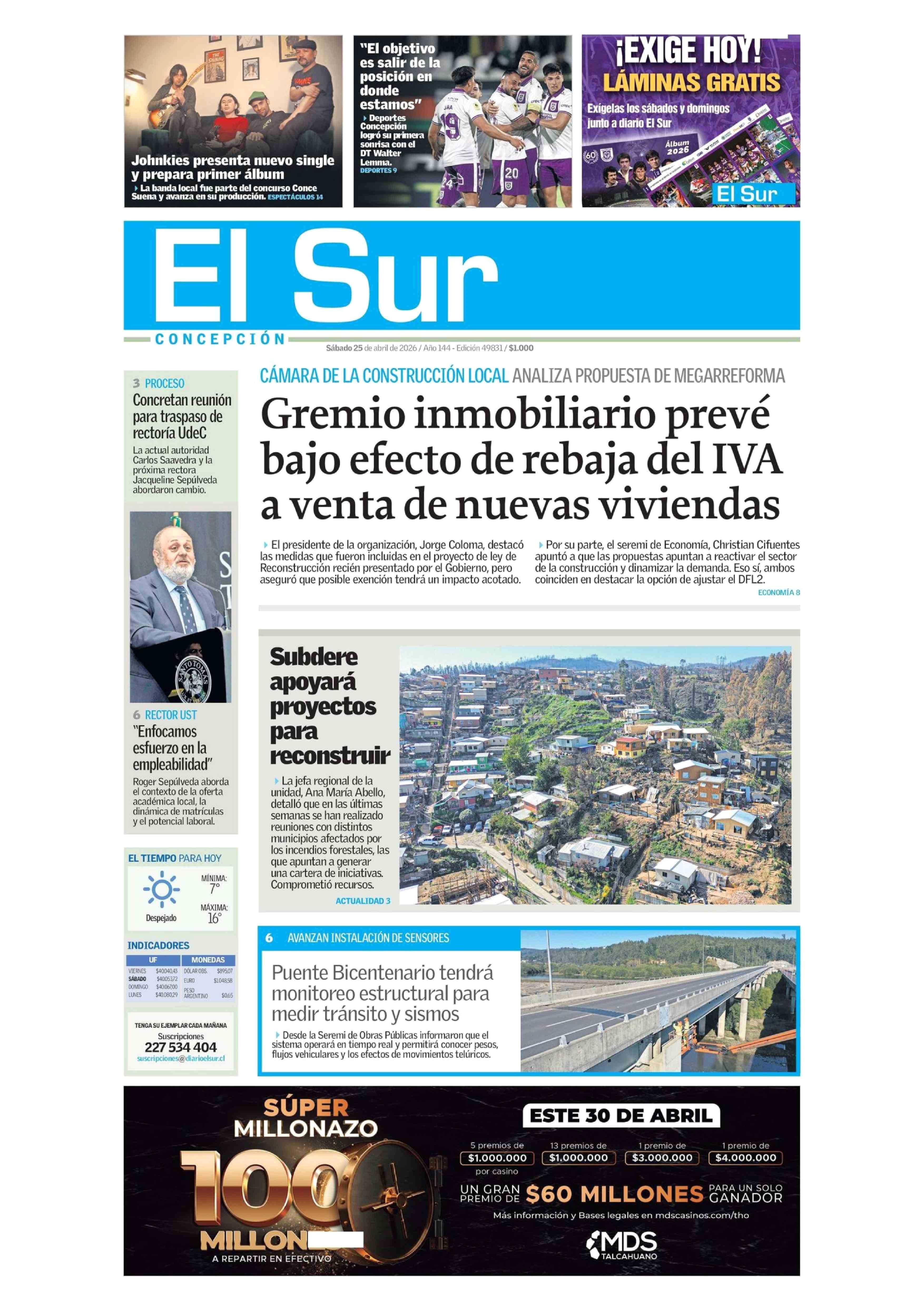 Fecha: 25-04-2026 Sector: Portada Región: Región del Bío-Bío
