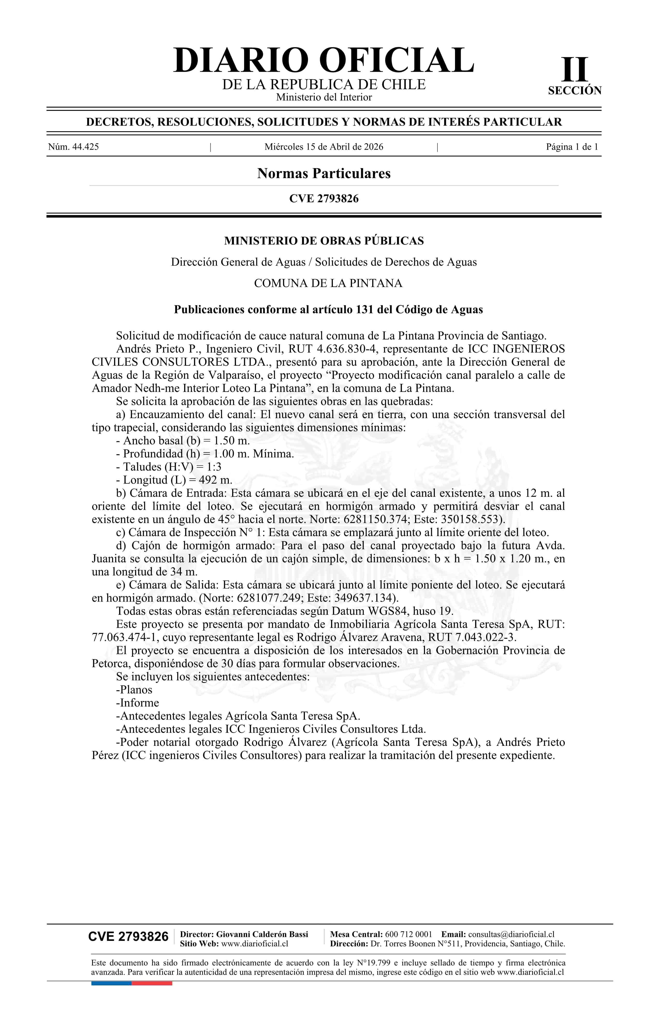 Fuente: Diario Oficial Edición Electrónica (Diario Oficial de Chile - 2 Normas Particulares) Página(s): 227