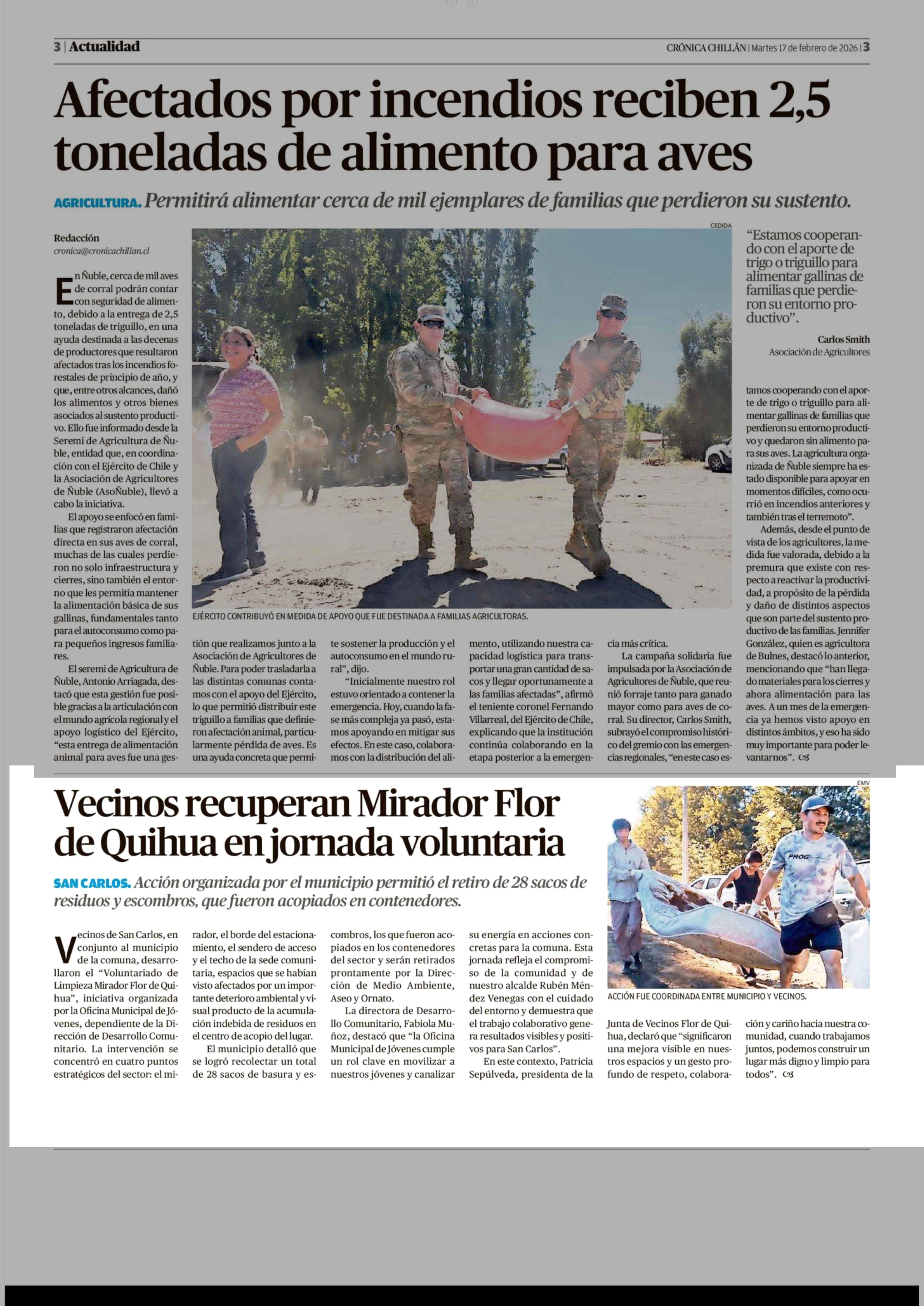Fecha: 17-02-2026 Sector: Noticia general Región: Región del Ñuble