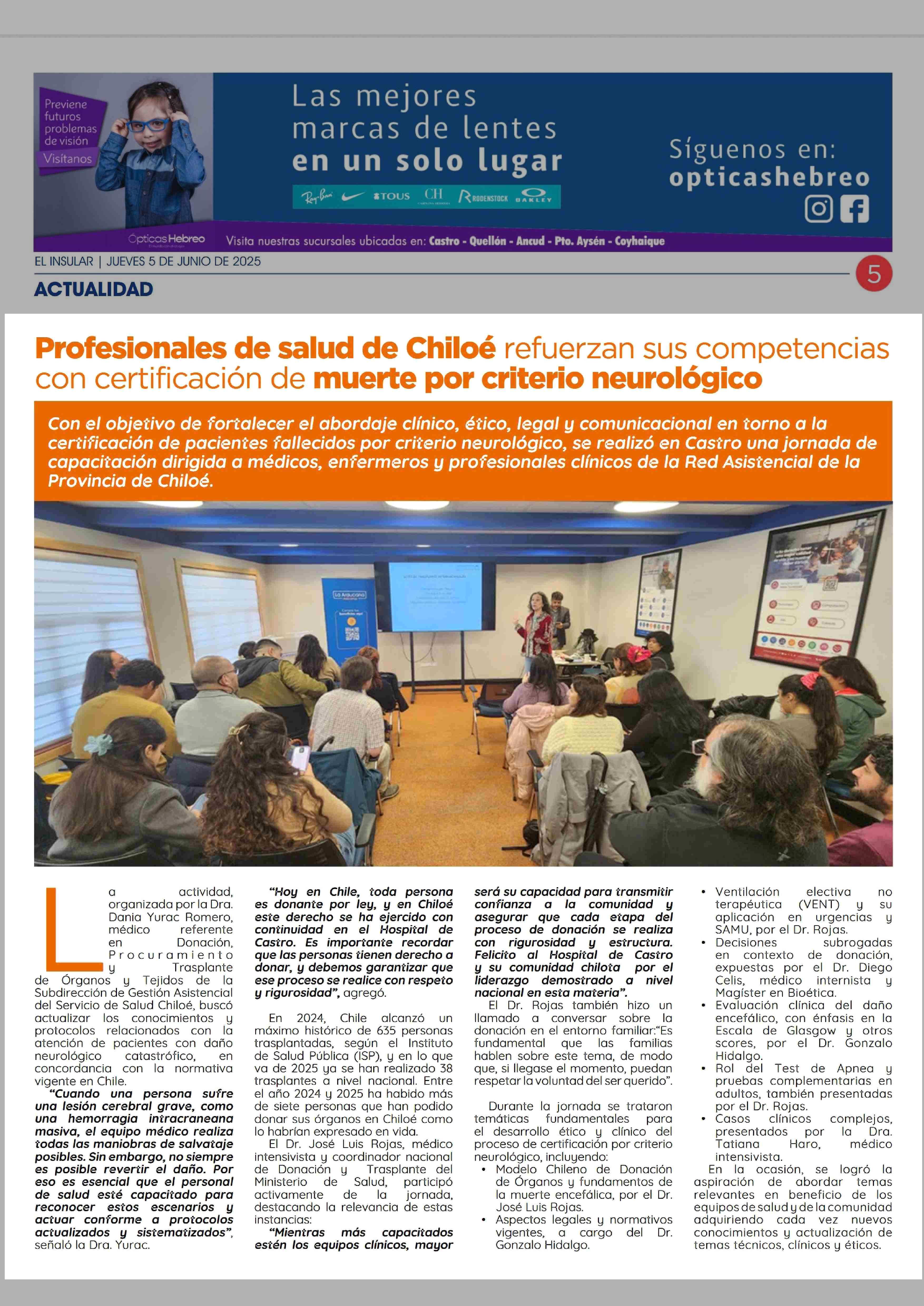 Profesionales de salud de Chiloé refuerzan sus competencias con certificación de muerte por criterio neurológico 05-06-2025 El Insular |