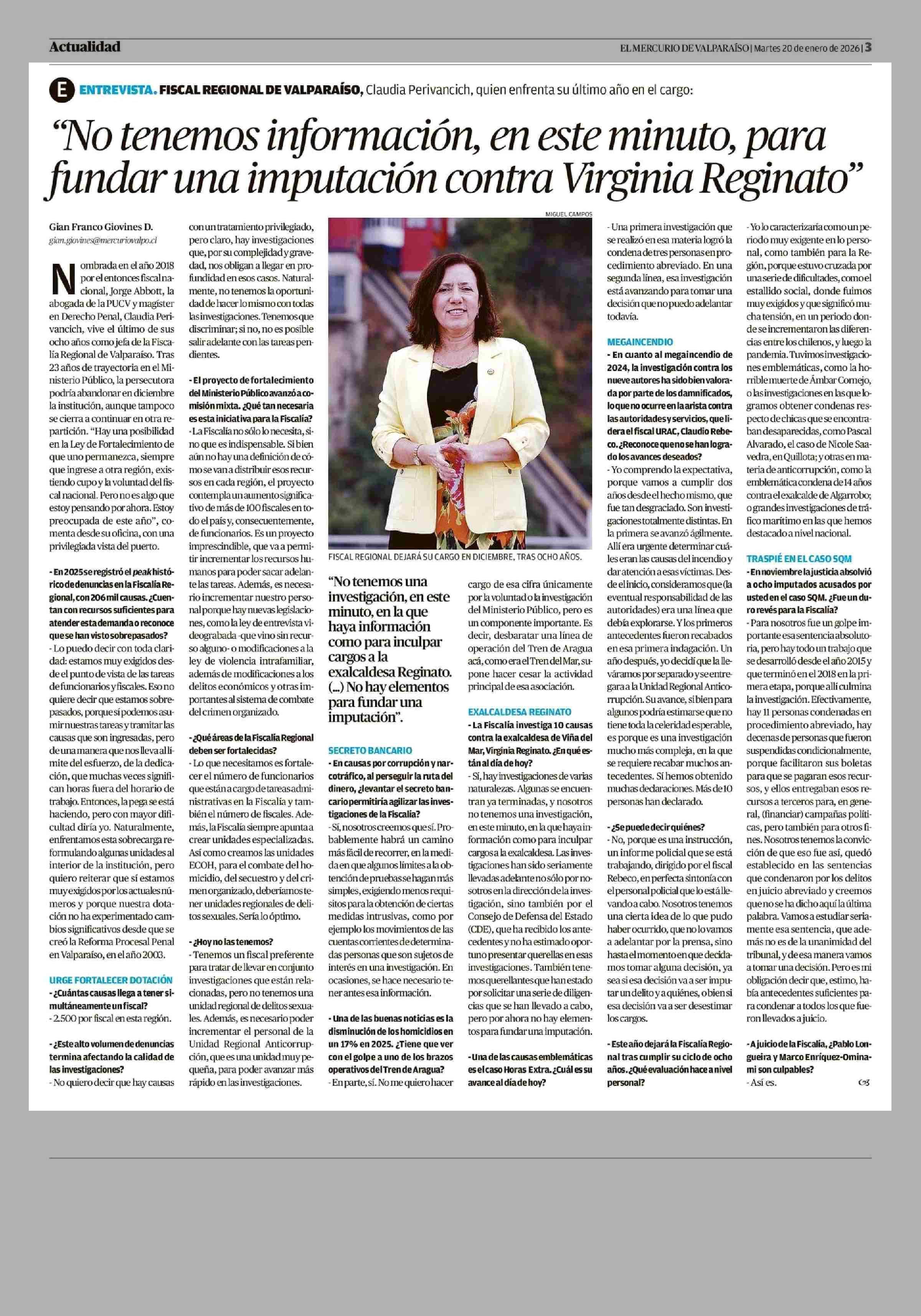 Título: "No tenemos información, en este minuto, para fundar una imputación contra Virginia Reginato"