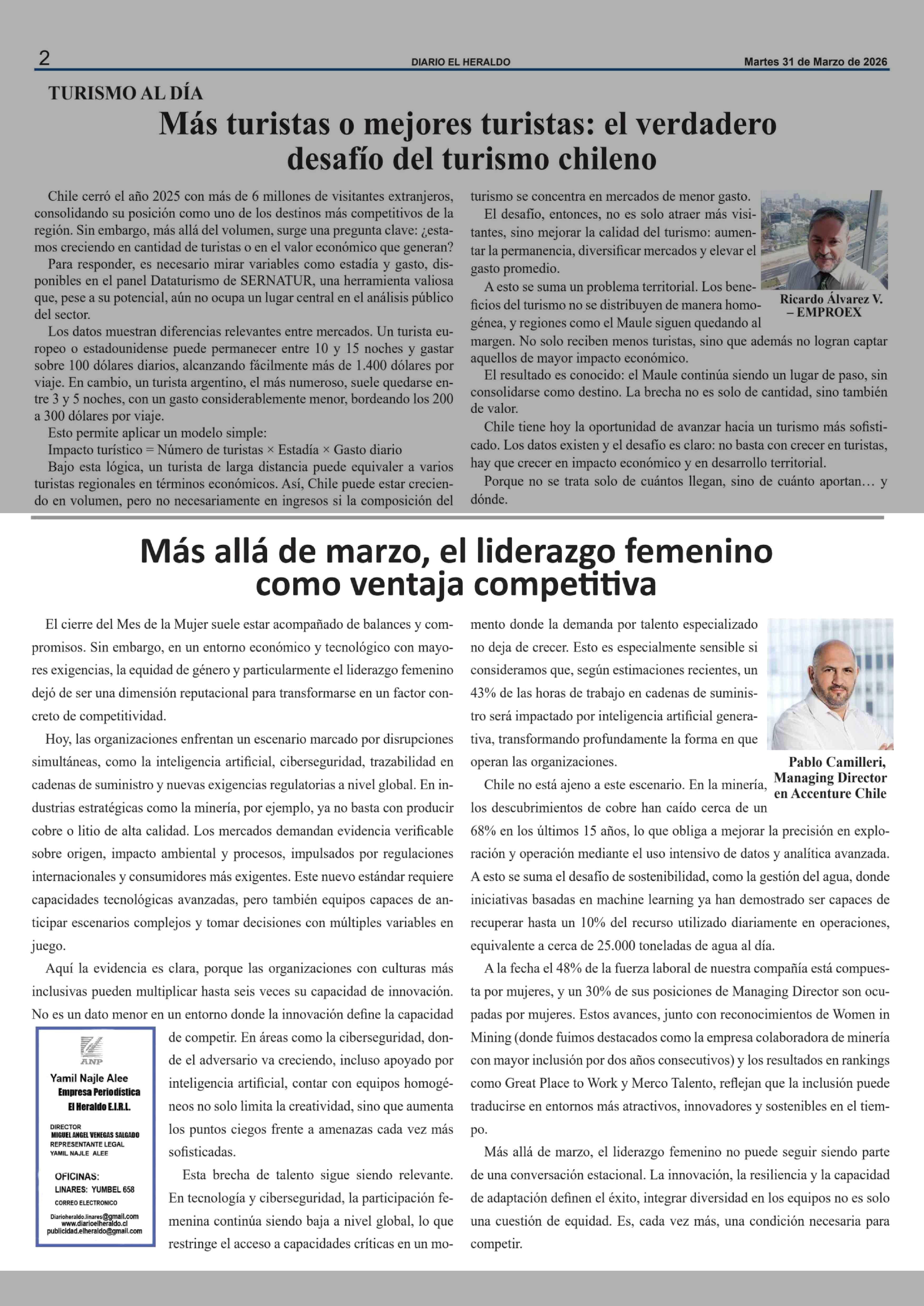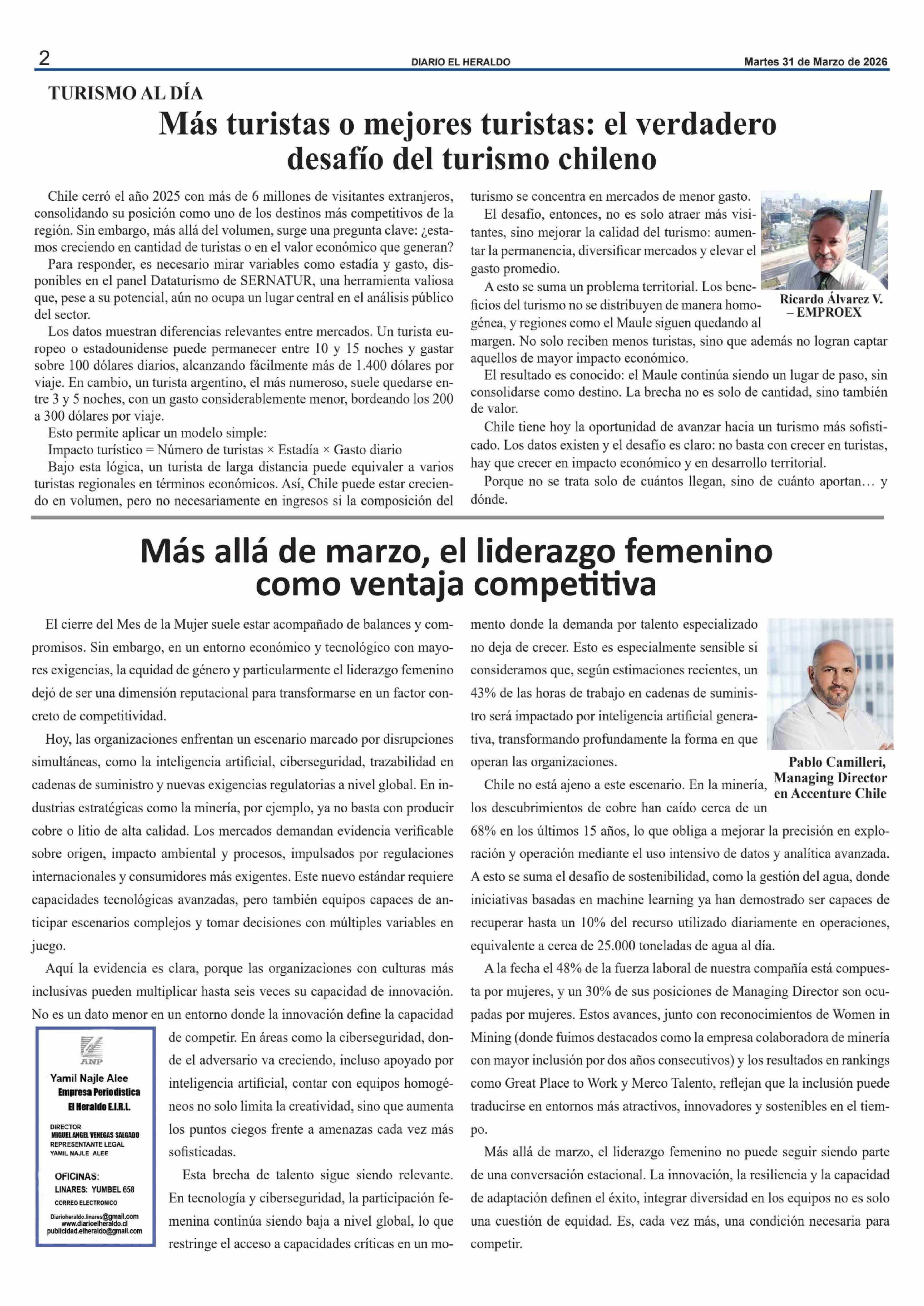 COLUMNAS DE OPINIÓN: Más allá de marzo, el liderazgo femenino como ventaja competitiva 31-03-2026 El Heraldo |