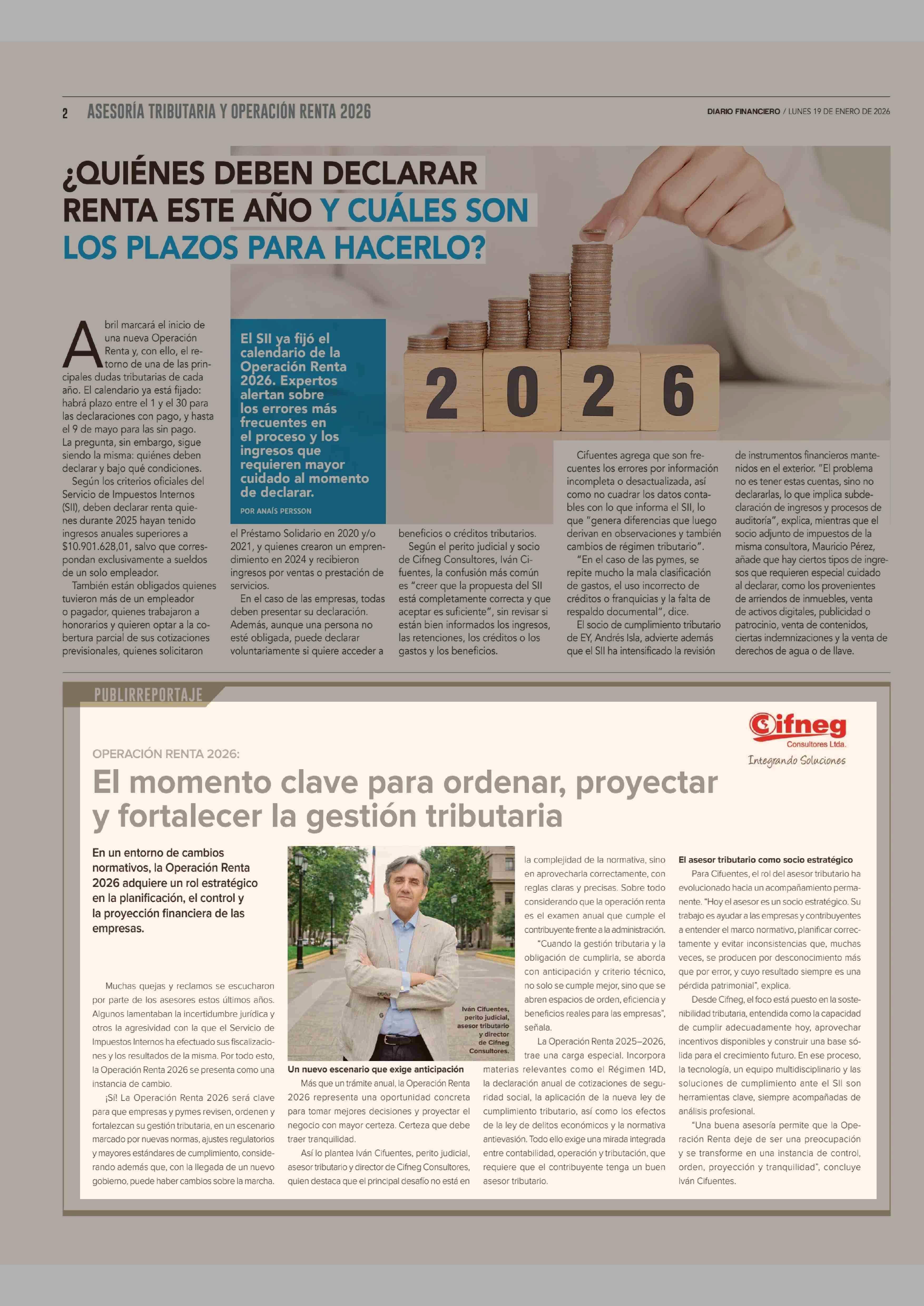 El momento clave para ordenar, proyectar y fortalecer la gestión tributaria 19-01-2026 Diario Financiero |