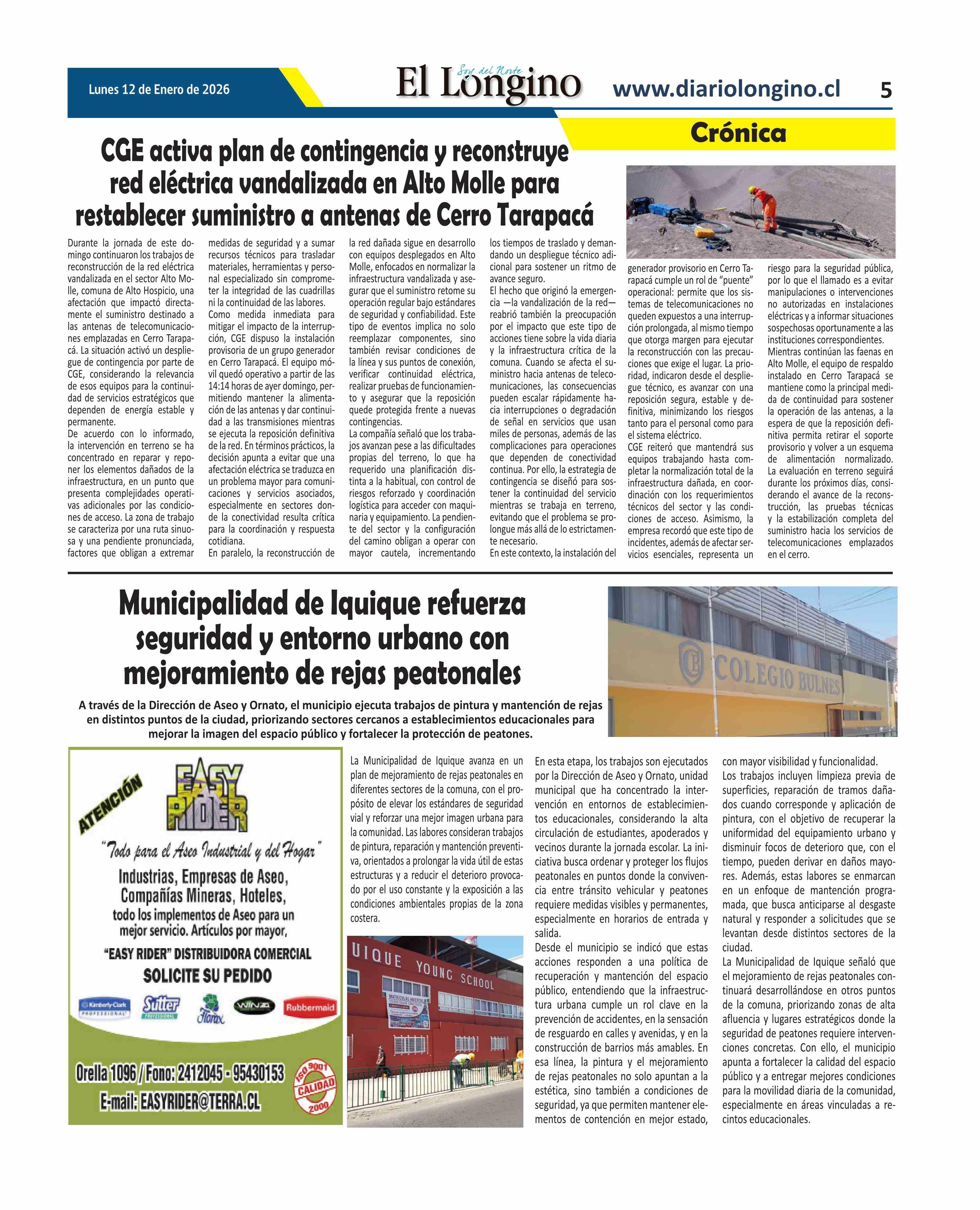 | Fecha: | 12-01-2026 | Sector: | Noticia general | Región: | Región de Tarapacá |