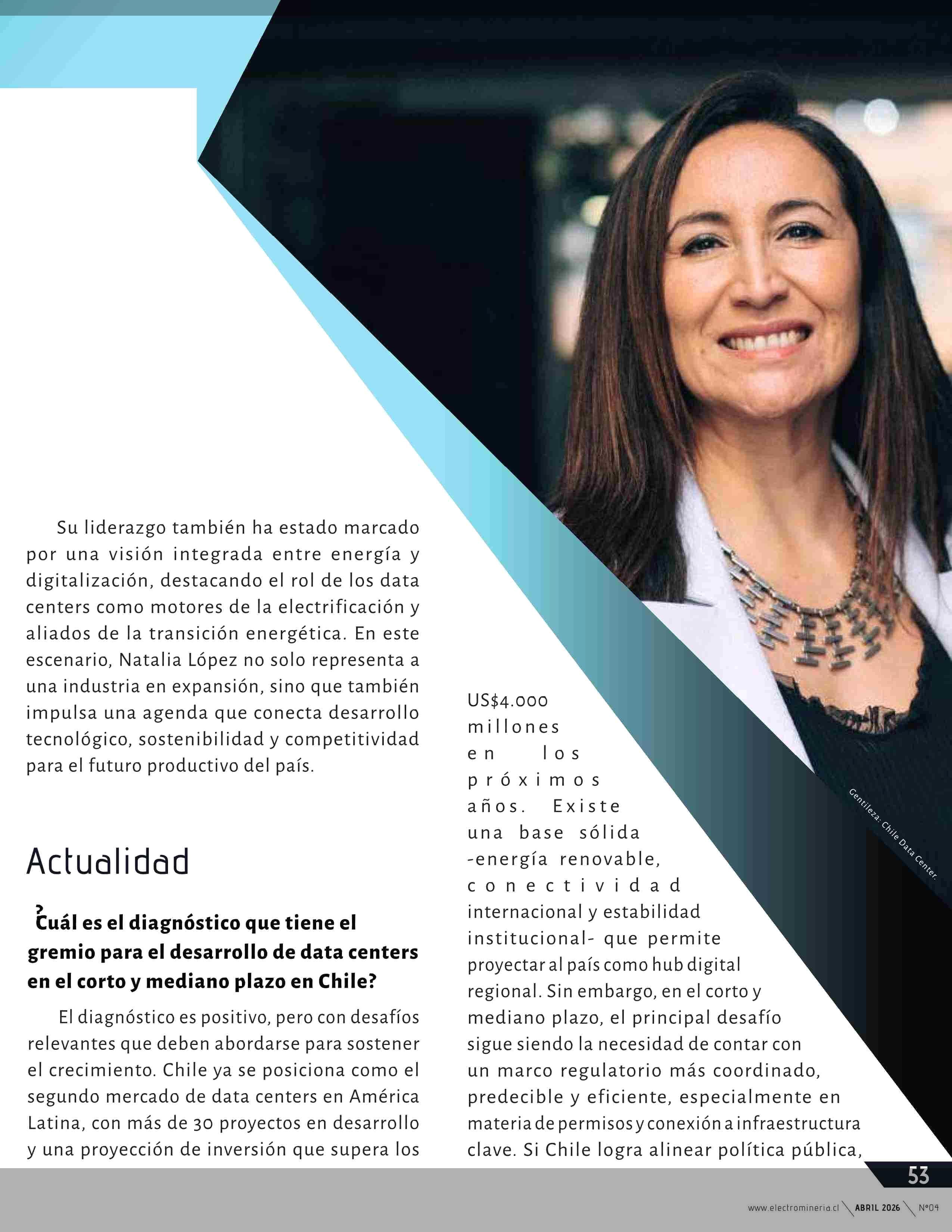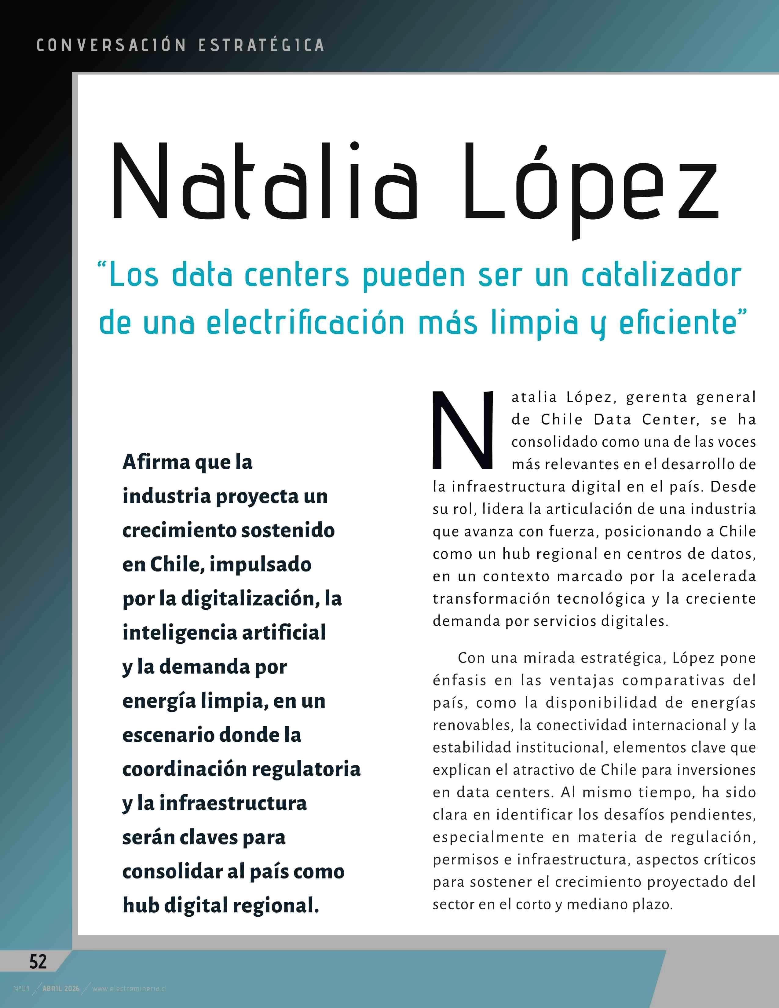 Natalia López “Los data centers pueden ser un catalizador de una electrificación más limpia y eficiente” 09-04-2026 Electrominería |