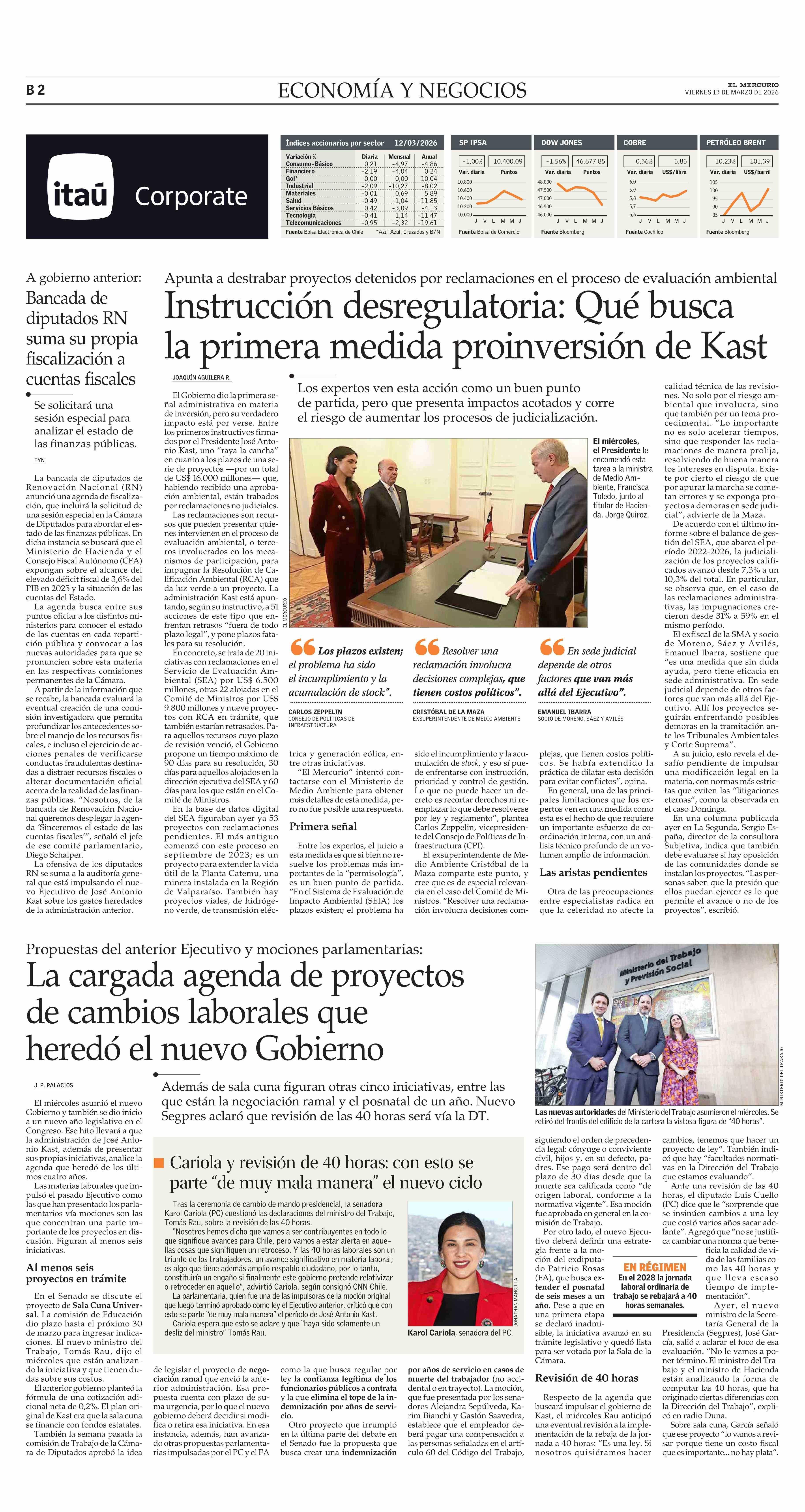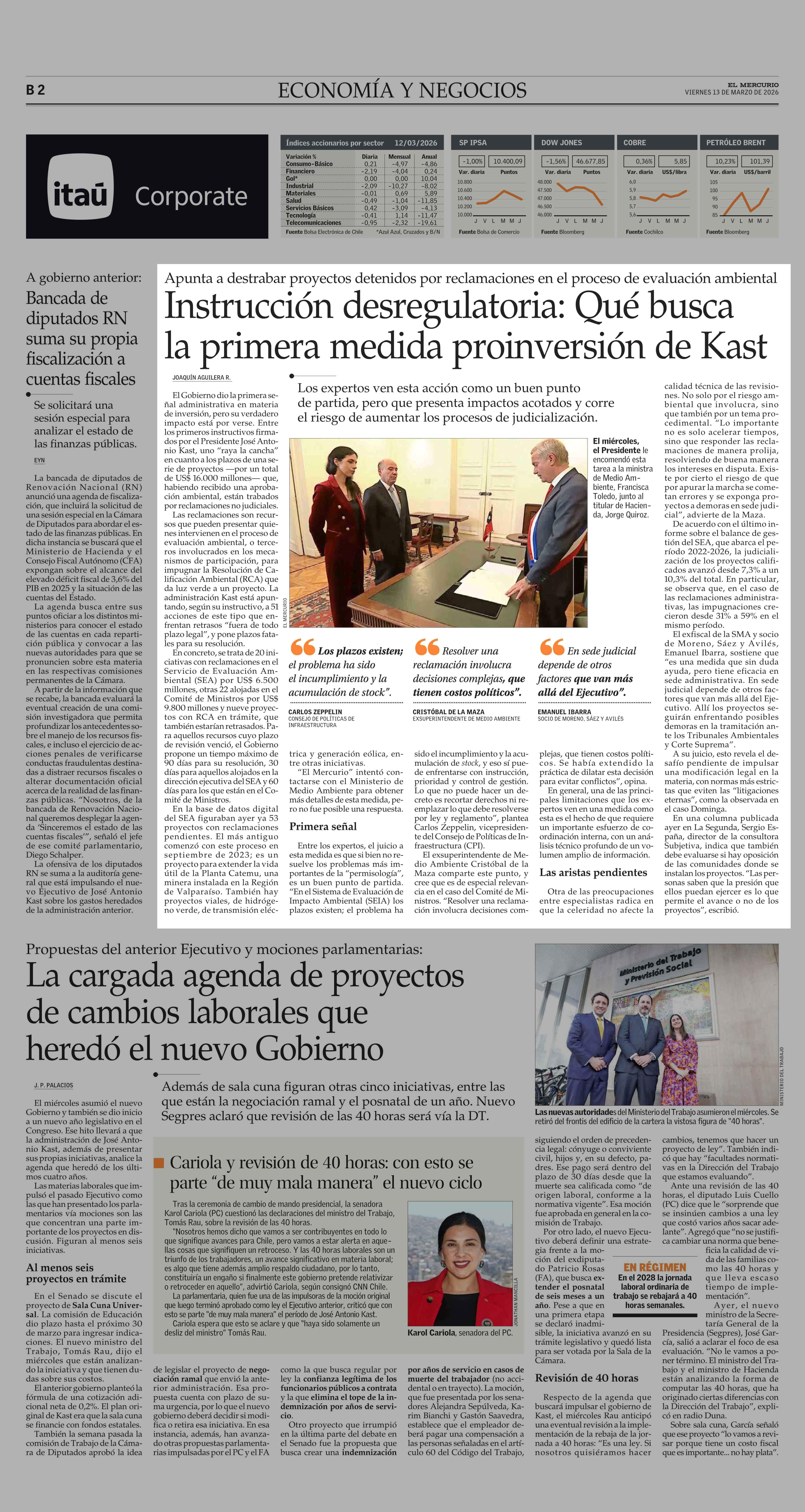 Instrucción desregulatoria: Qué busca la primera medida proinversión de Kast 13-03-2026 El Mercurio |