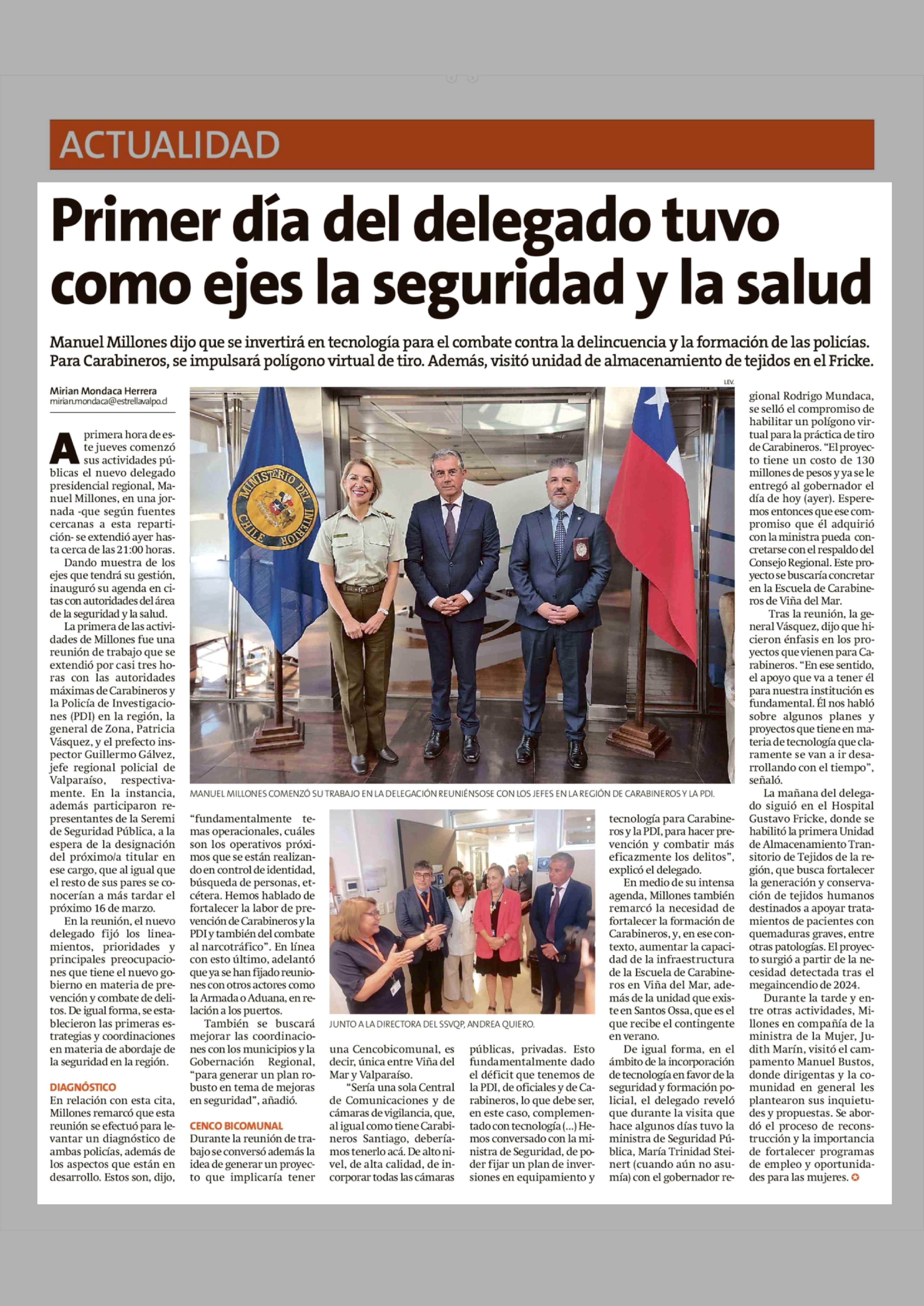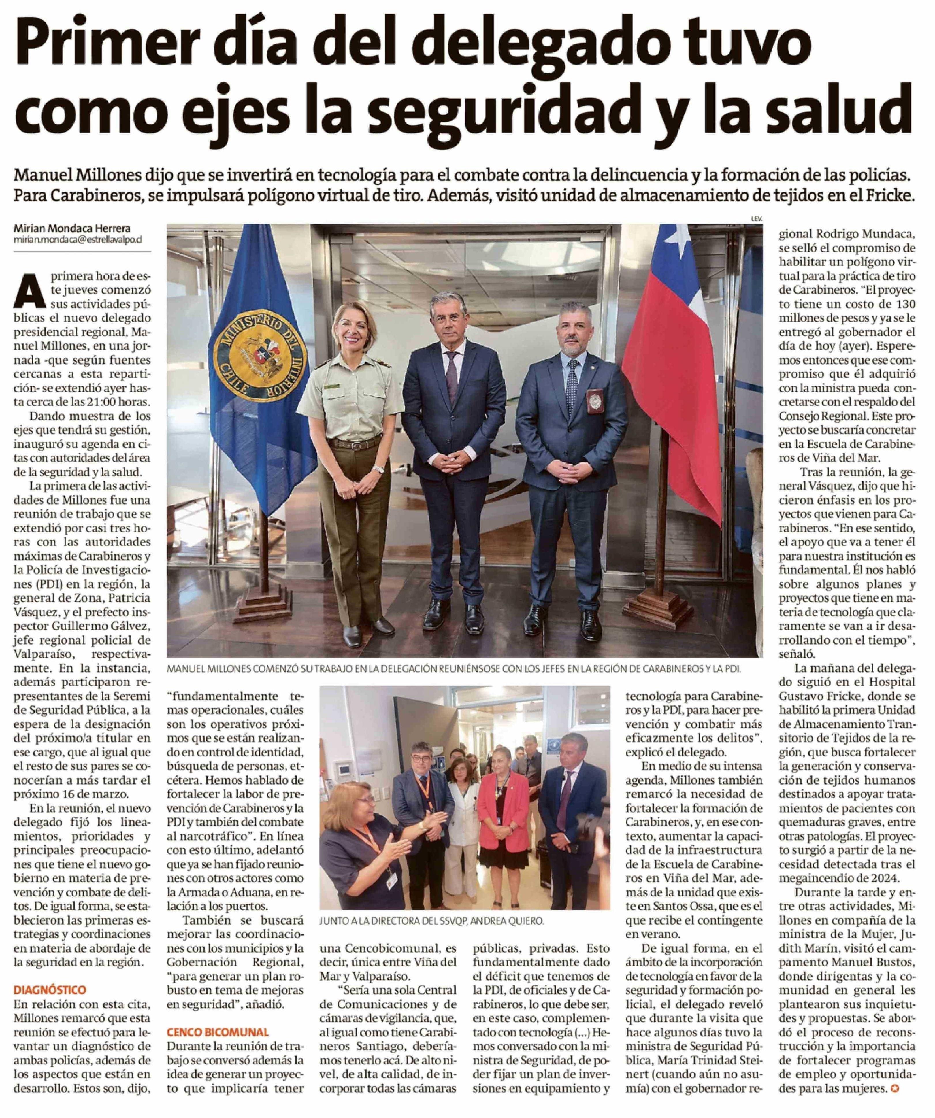 Primer día del delegado tuvo como ejes la seguridad y la salud 13-03-2026 La Estrella de Valparaíso |