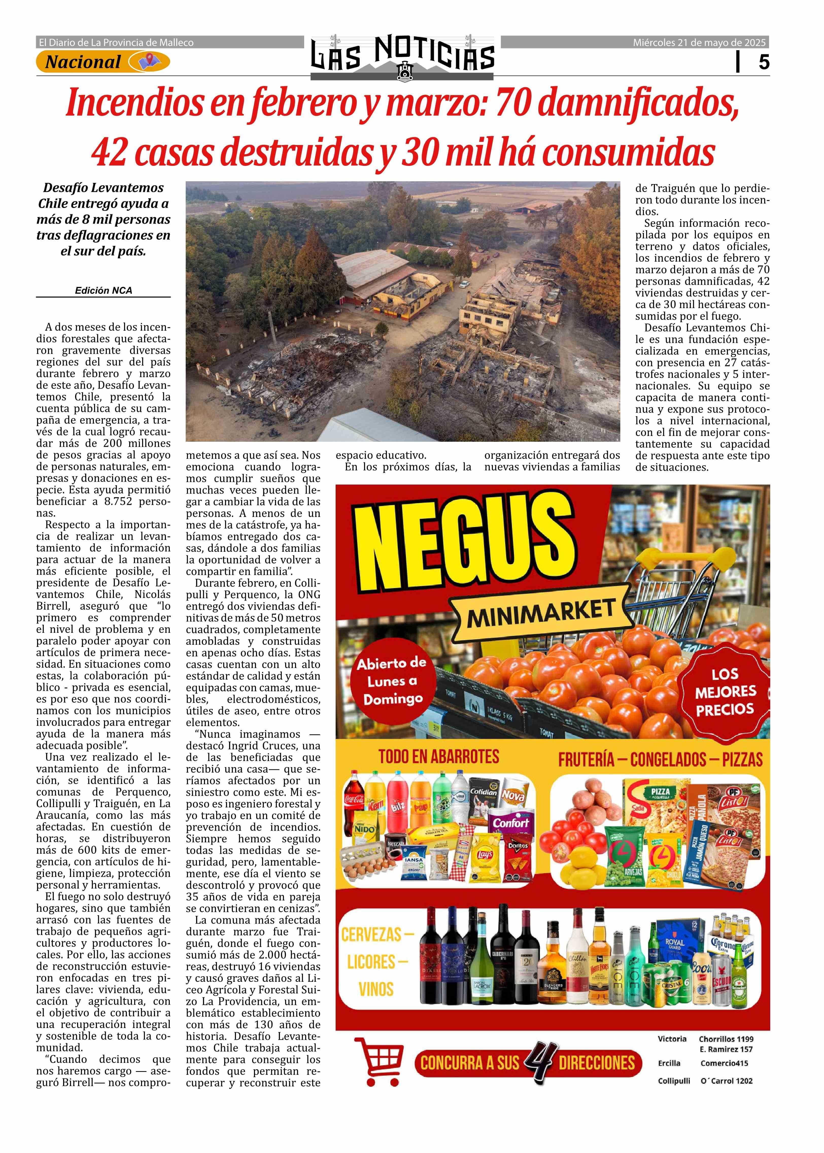 Incendios en febrero y marzo: 7/0 damnificados, 42 casas destruidas y 30 mil há consumidas 21-05-2025 Las Noticias |