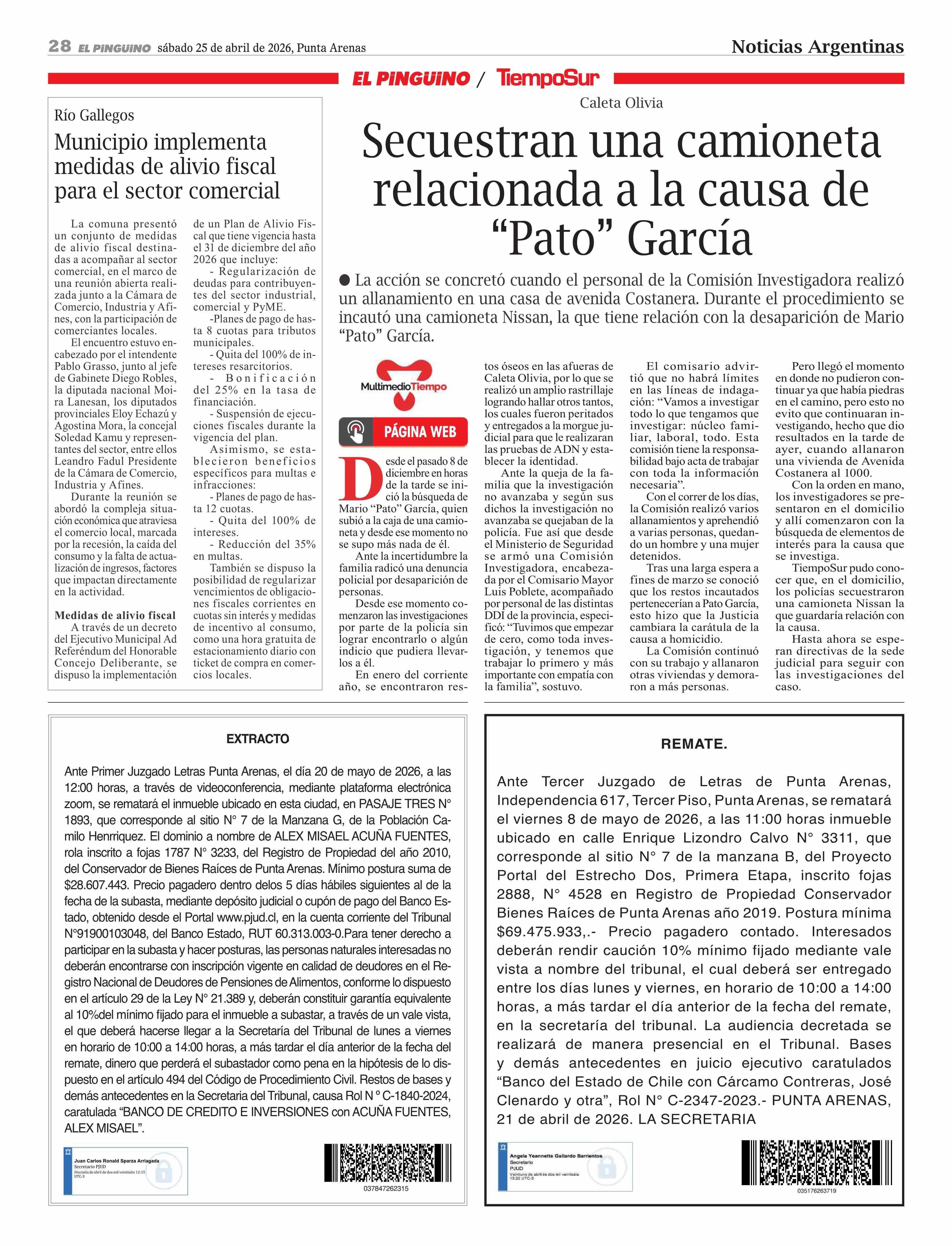 Municipio implementa medidas de alivio fiscal para el sector comercial 25-04-2026 El Pingüino |