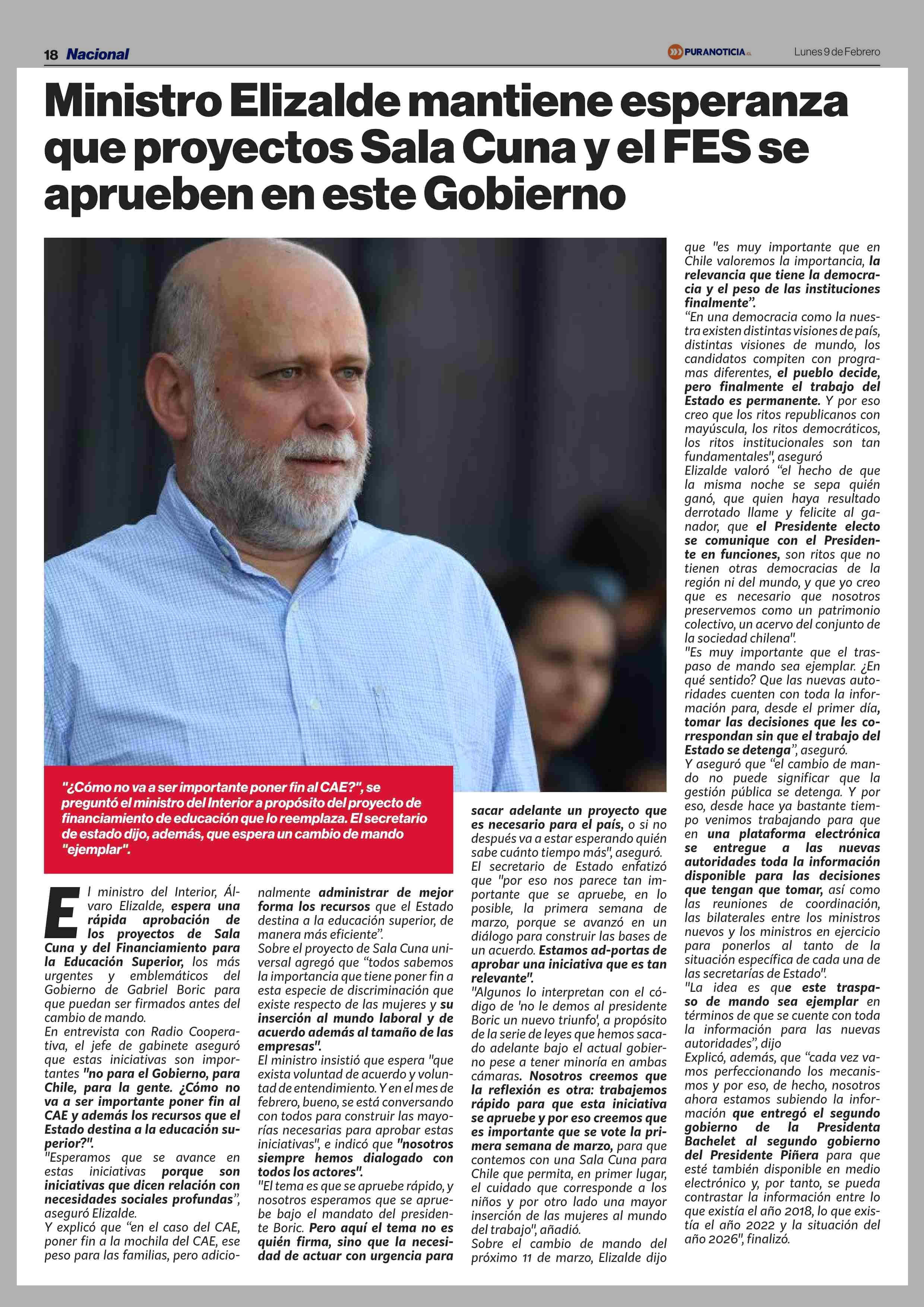Título: Ministro Elizalde mantiene esperanza que proyectos Sala Cuna y el FES se aprueben en este Gobierno