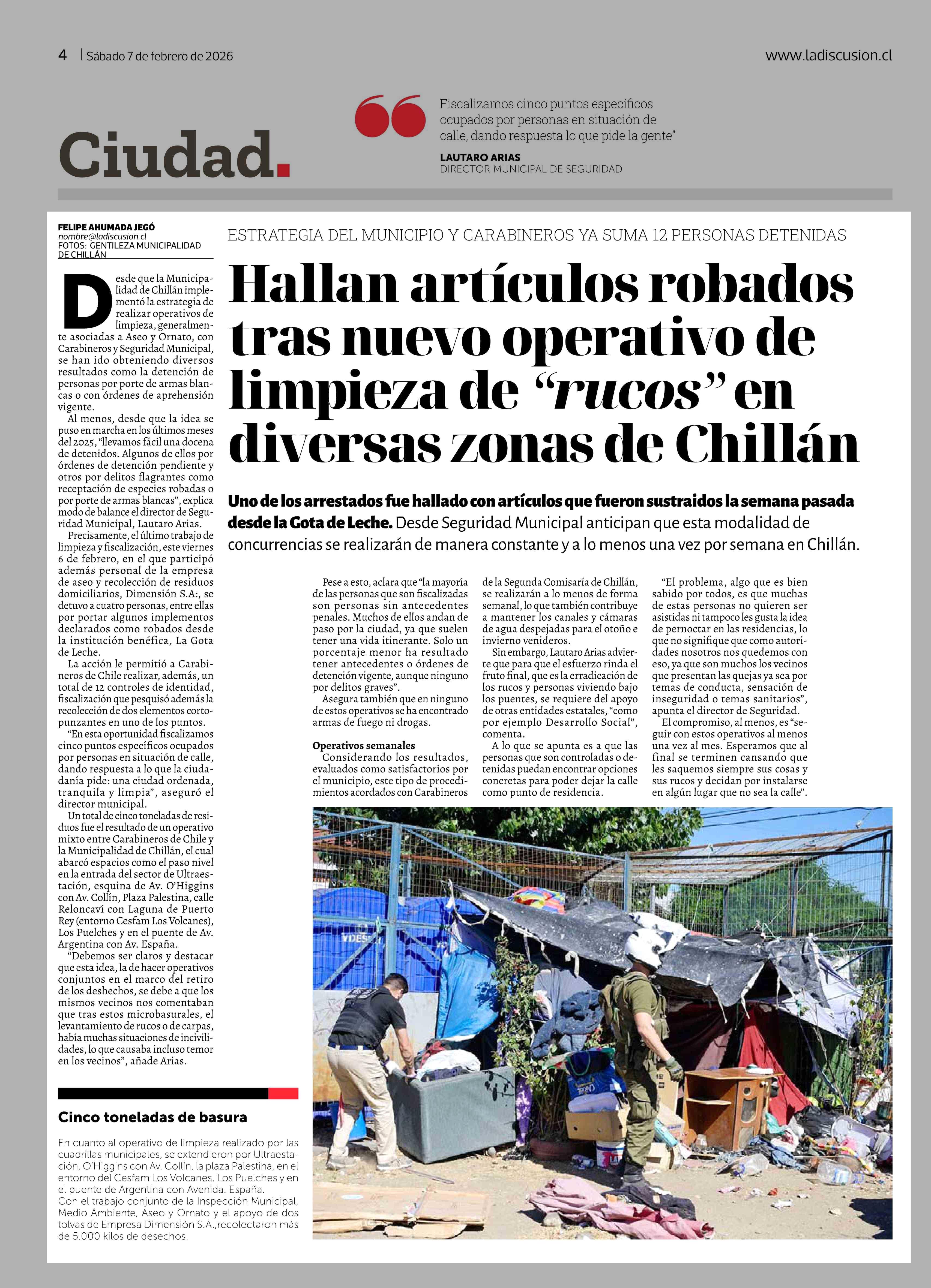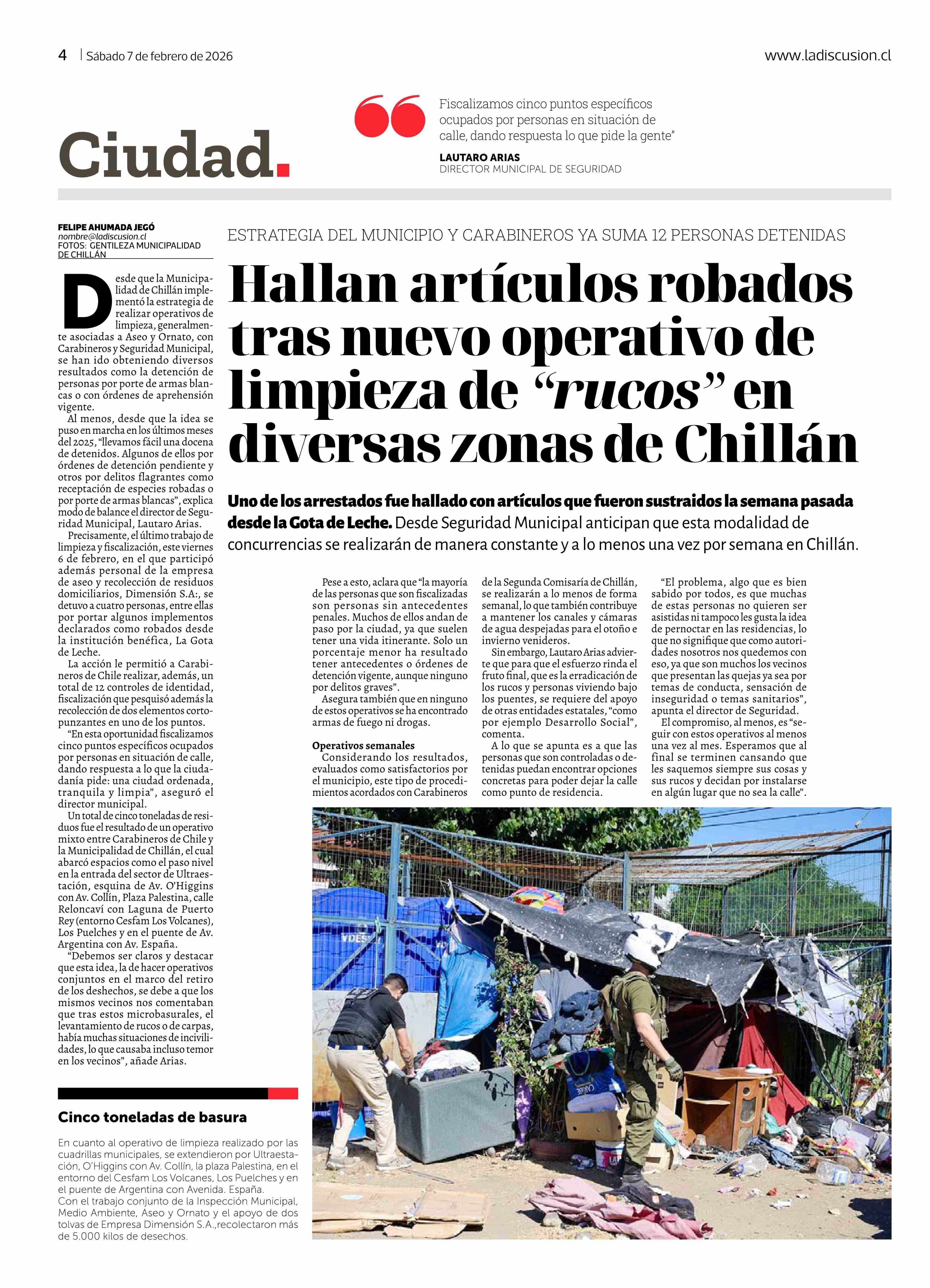 Hallan artículos robados tras nuevo operativo de limpieza de "rucos" en diversas zonas de Chillán 07-02-2026 La Discusión |