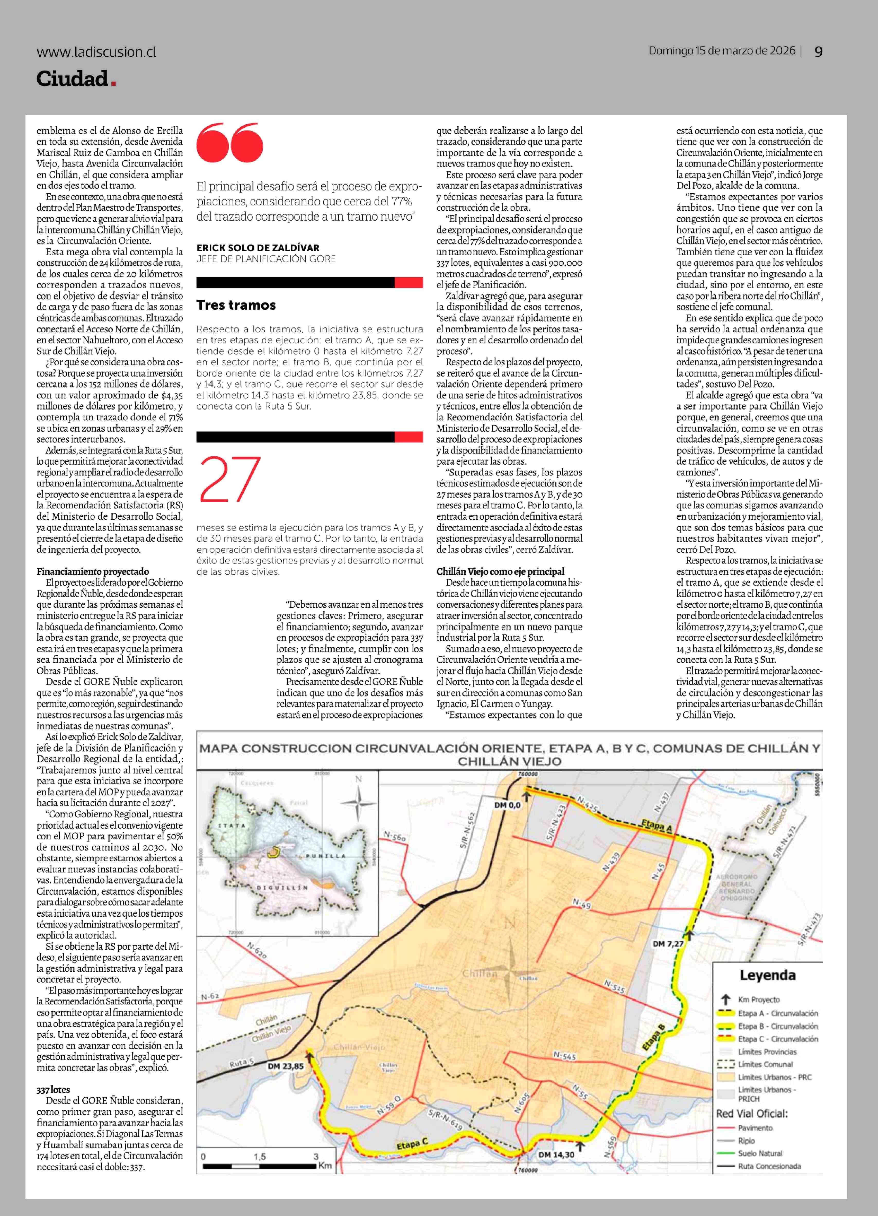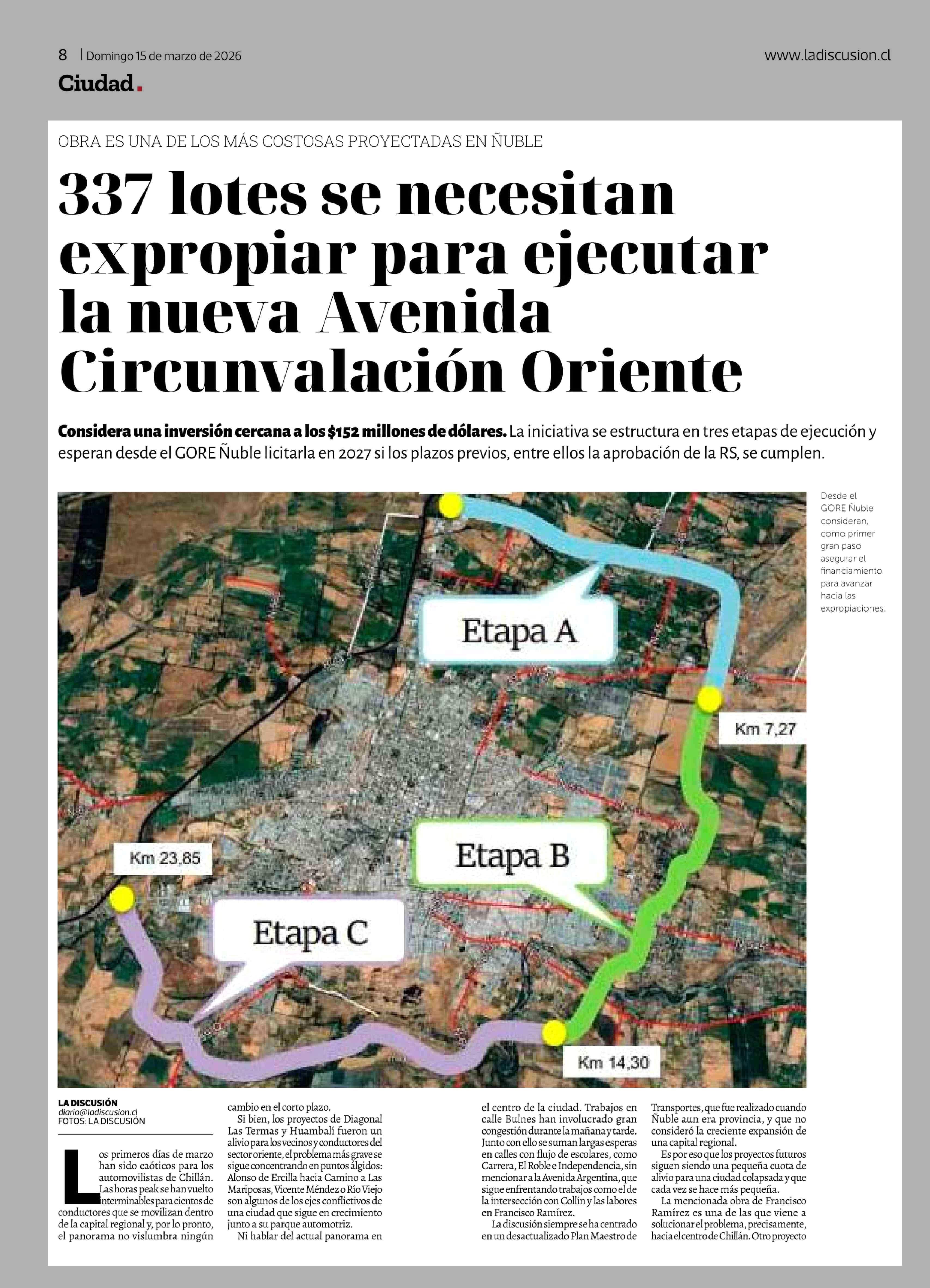 337 Lotes se necesitan expropiar para ejecutar la nueva Avenida Circunvalación Oriente 15-03-2026 La Discusión |