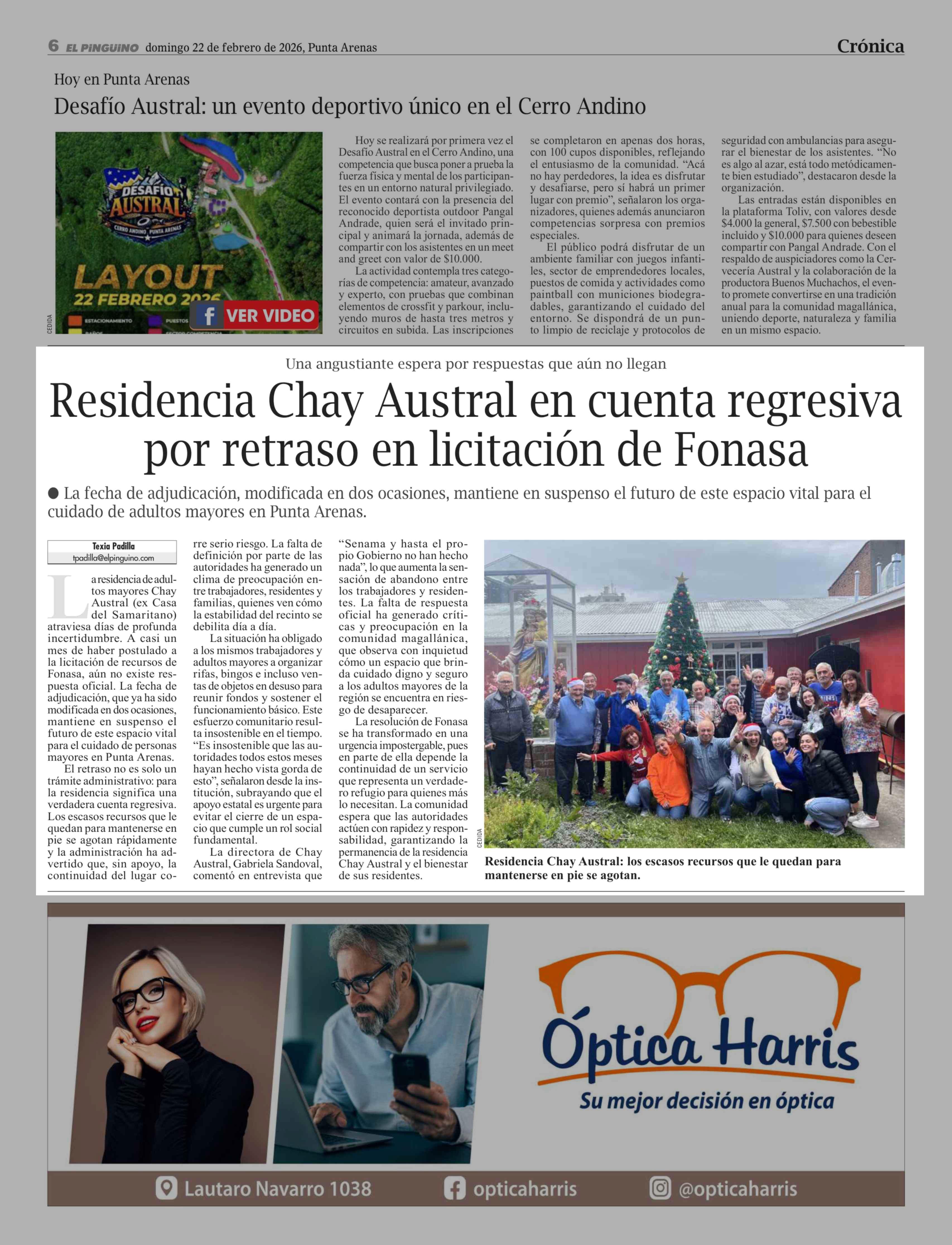 Fecha: 22-02-2026 Sector: Noticia general Región: Región de Magallanes y de la Antártica Chilena