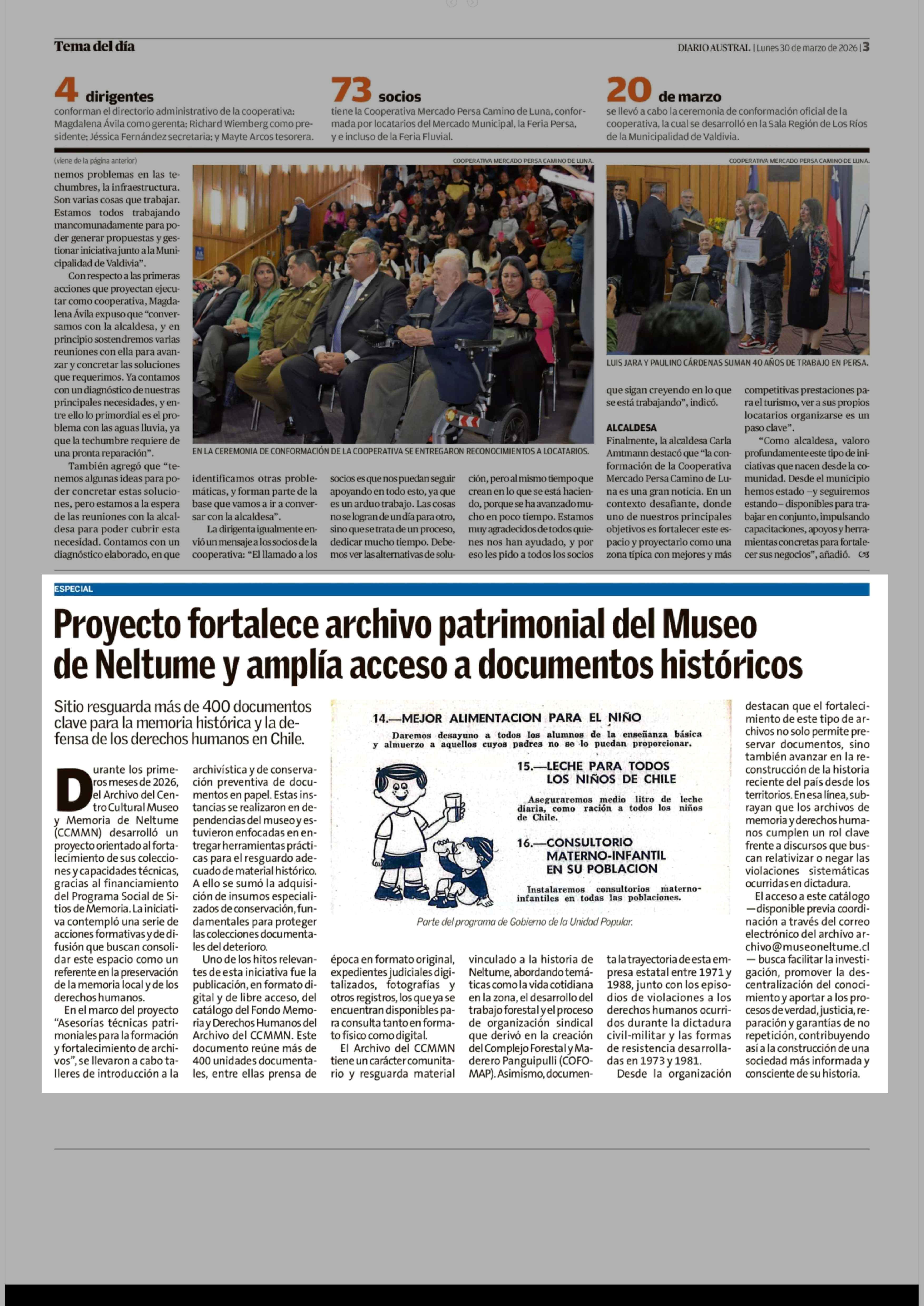 Proyecto fortalece archivo patrimonial del Museo de Neltume y amplía acceso a documentos históricos 30-03-2026 Diario Austral Región de Los Ríos |