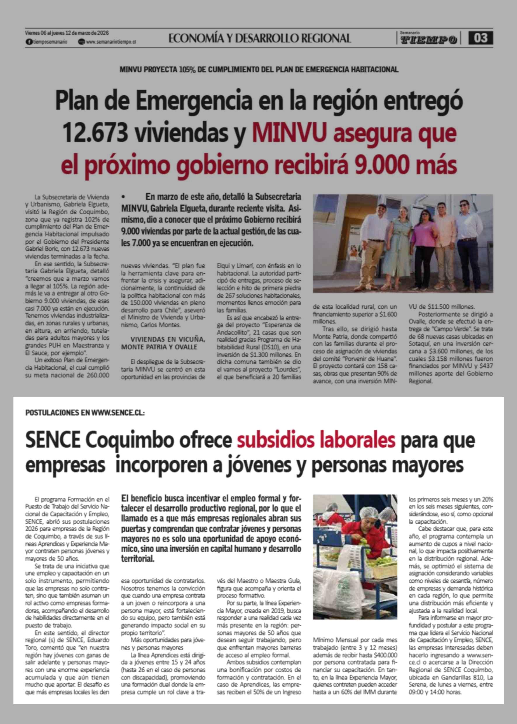 SENCE Coquimbo ofrece subsidios laborales para que empresas incorporen a jóvenes y personas mayores 06-03-2026 Semanario Tiempo |