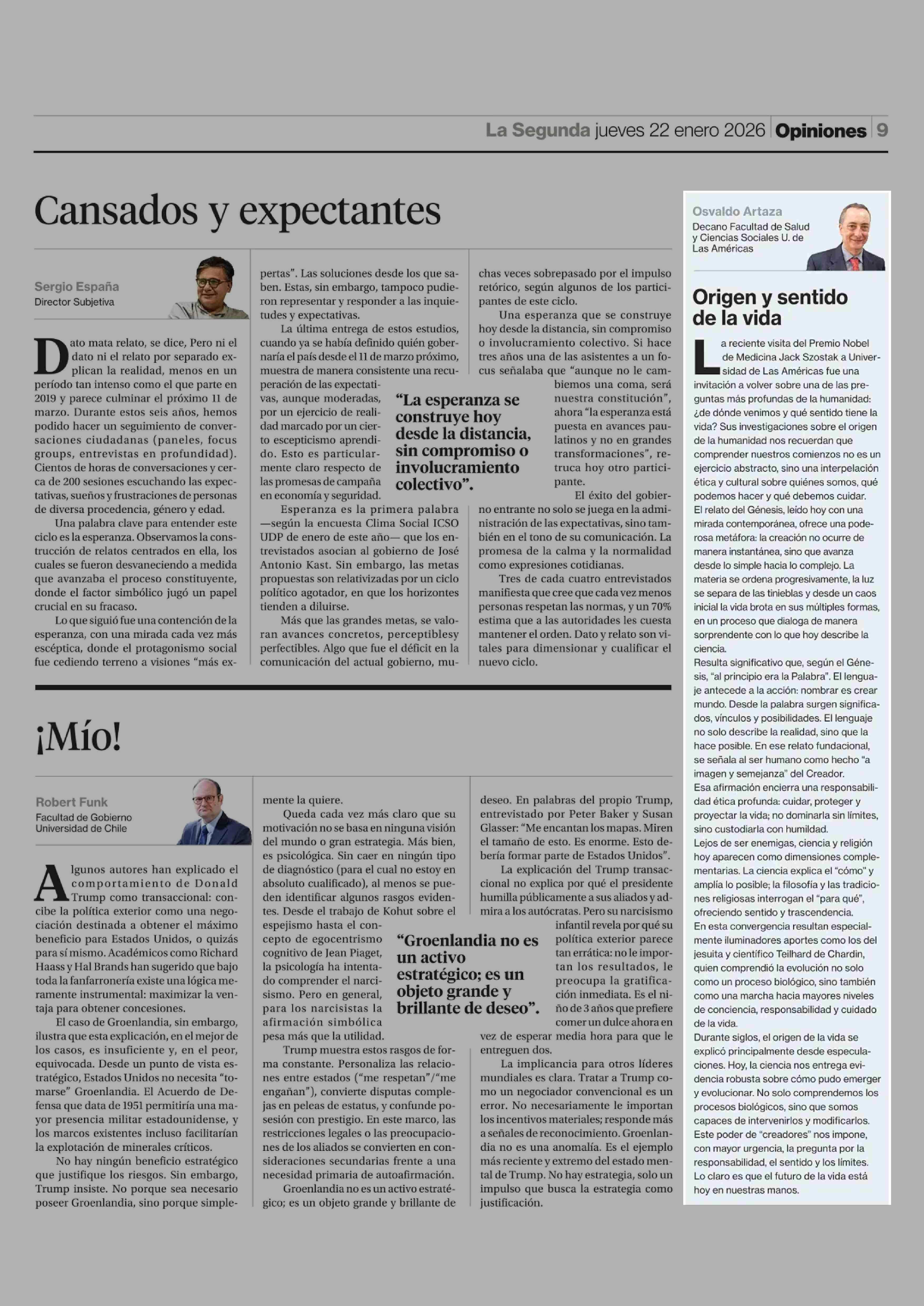 Fecha: 22-01-2026 Sector: Columnas de Opinión Región: Región Metropolitana de Santiago