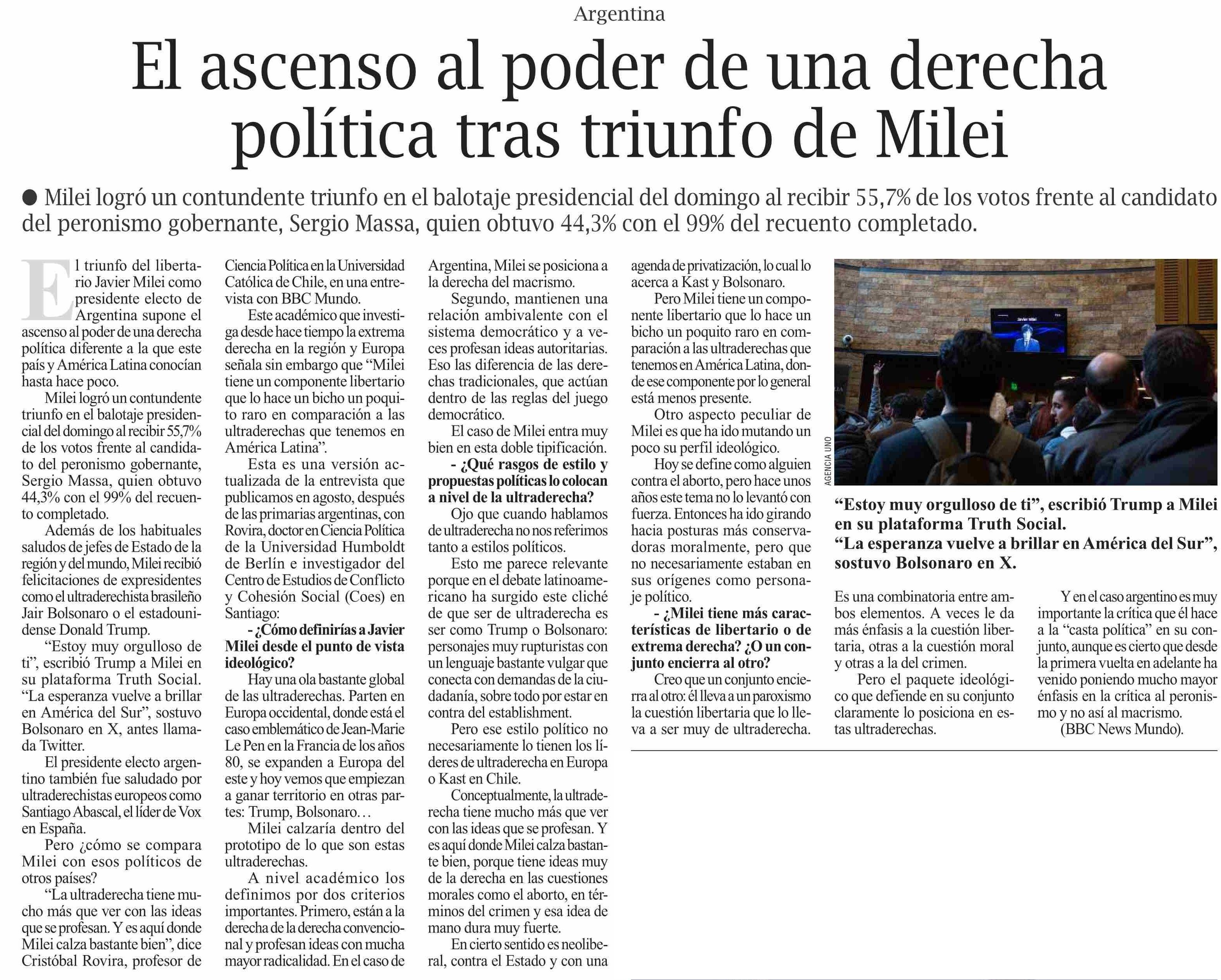 | Título: | El ascenso al poder de una derecha política tras triunfo de Milei |