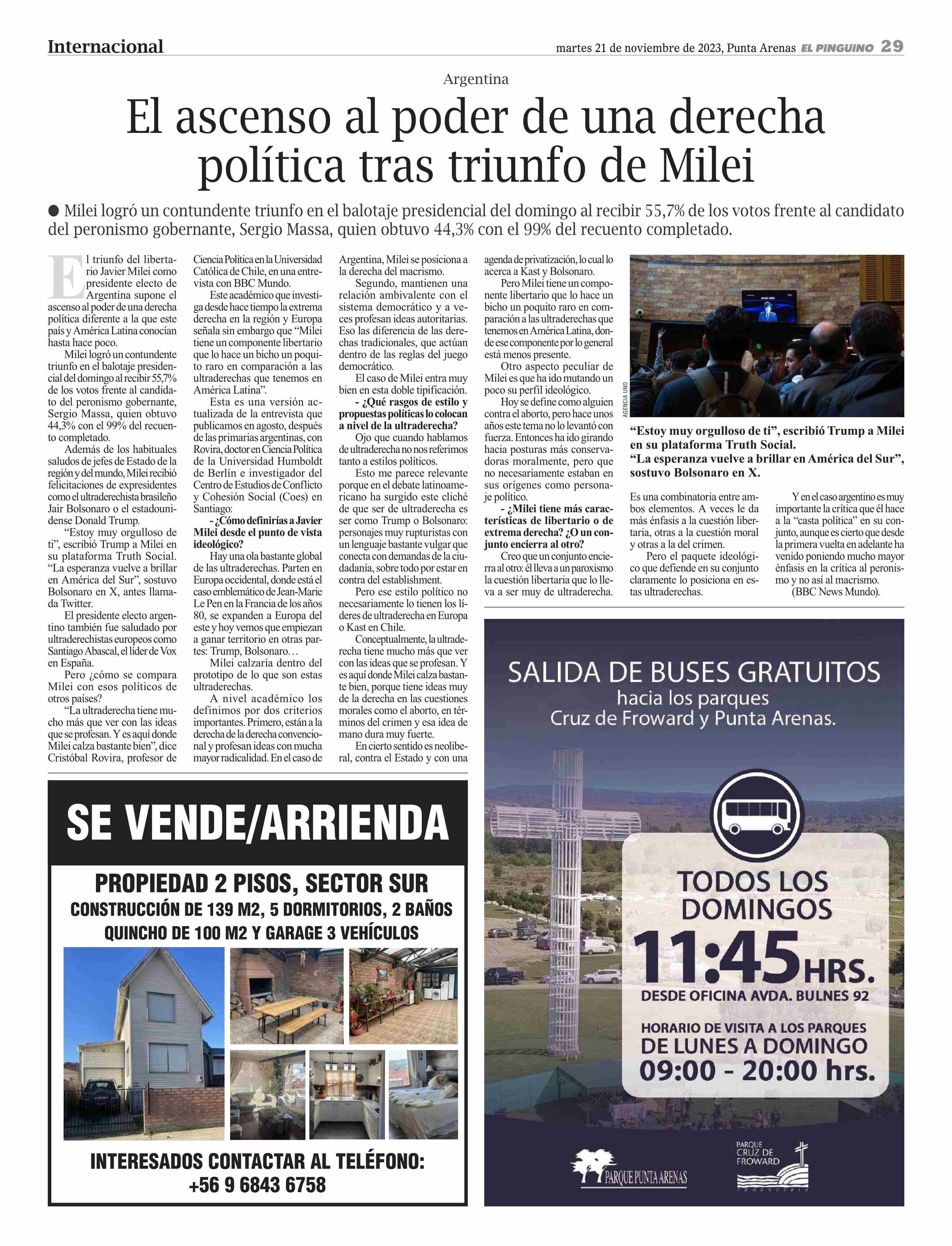 El ascenso al poder de una derecha política tras triunfo de Milei 21-11-2023 El Pingüino |