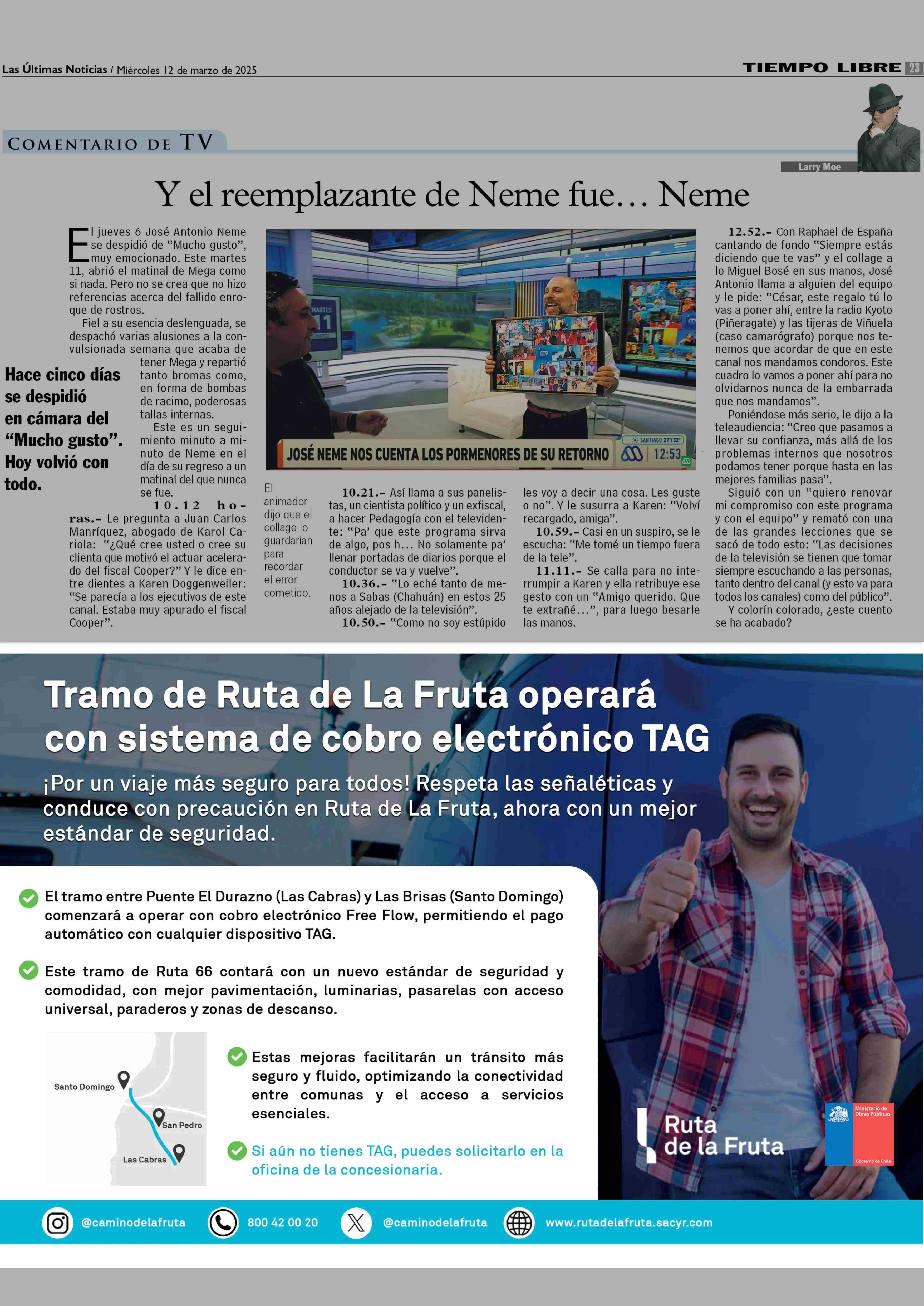 AVISO AUTOPISTAS: RUTA DE LA FRUTA 12-03-2025 Las Últimas Noticias |