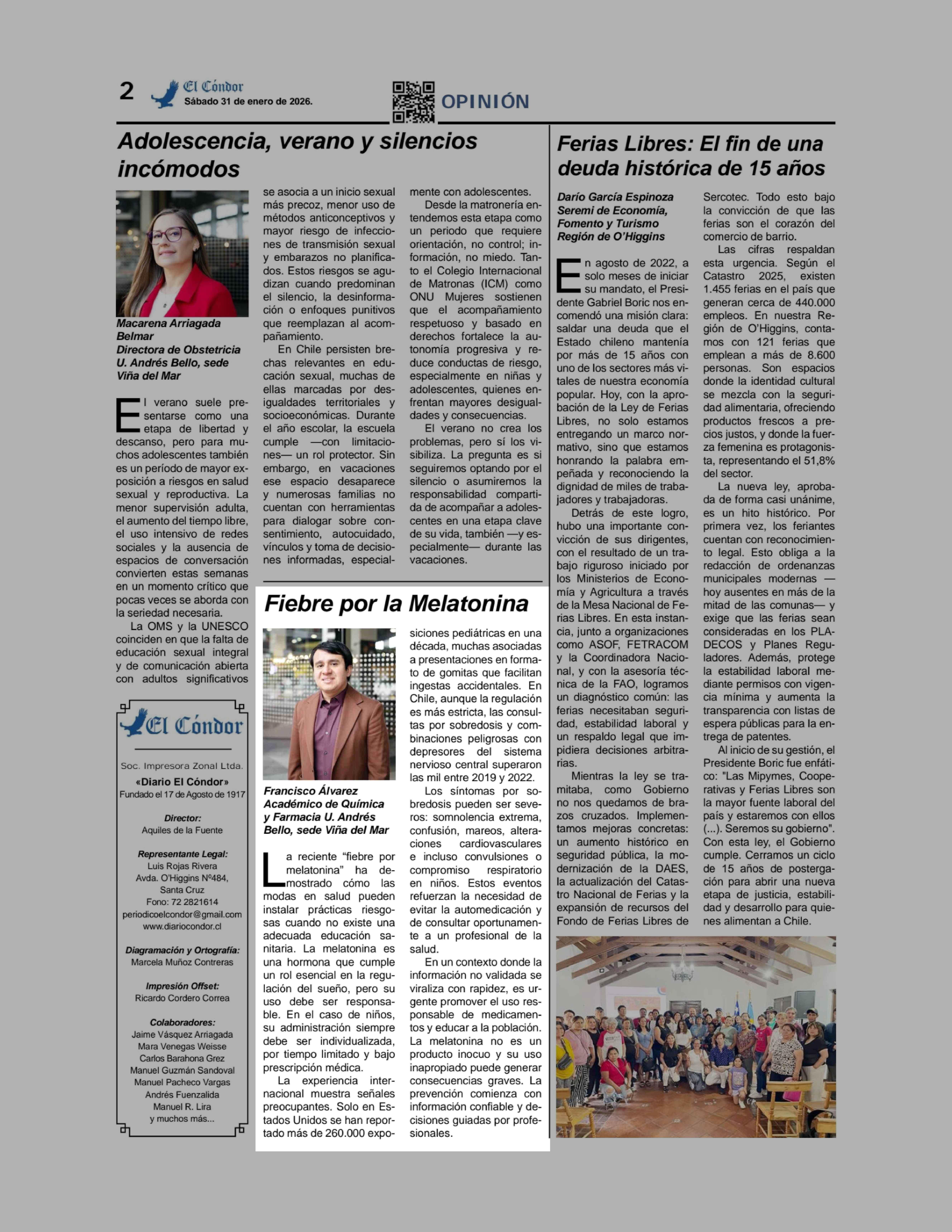 Columnas de Opinión: Fiebre por la Melatonina 31-01-2026 Diario El Cóndor |