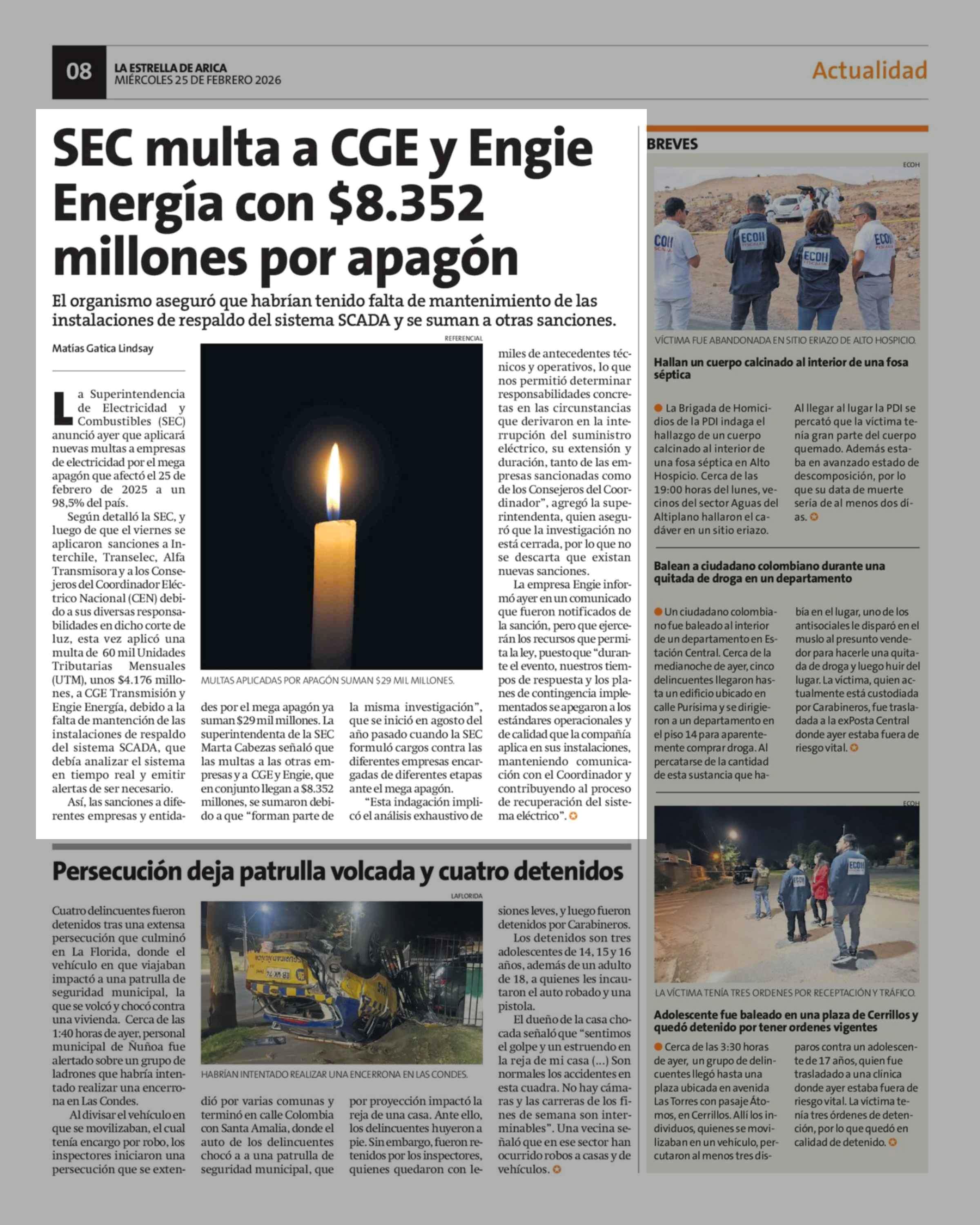 Título: SEC multa a CGE y Engie Energía con $8.352 millones por apagón