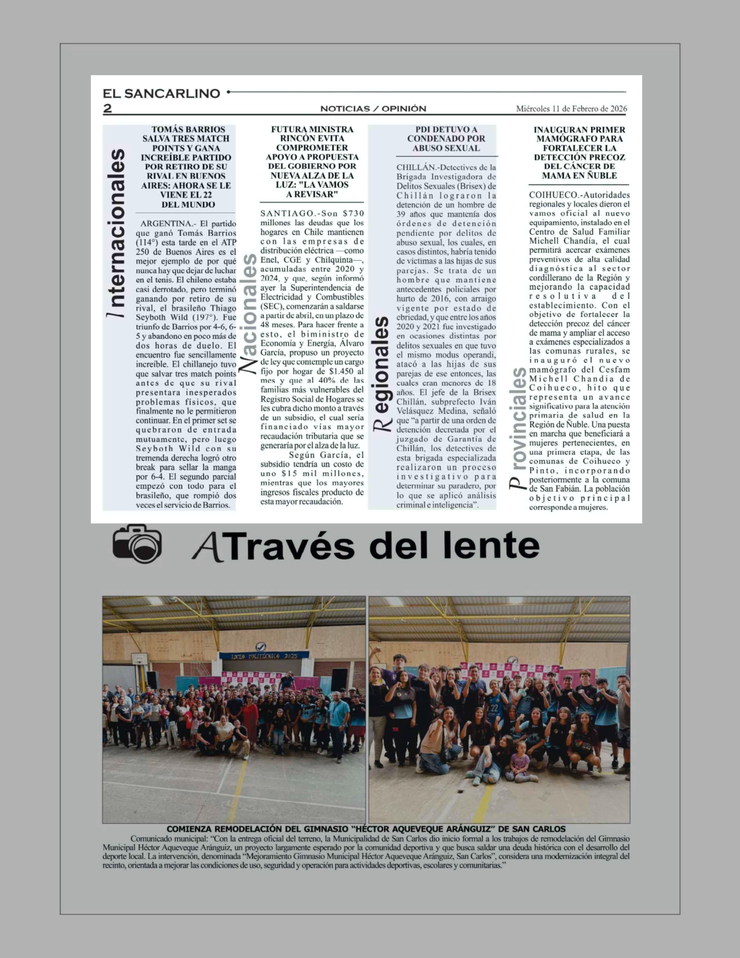 | Fecha: | 11-02-2026 | Sector: | Noticia general | Región: | Región del Ñuble |