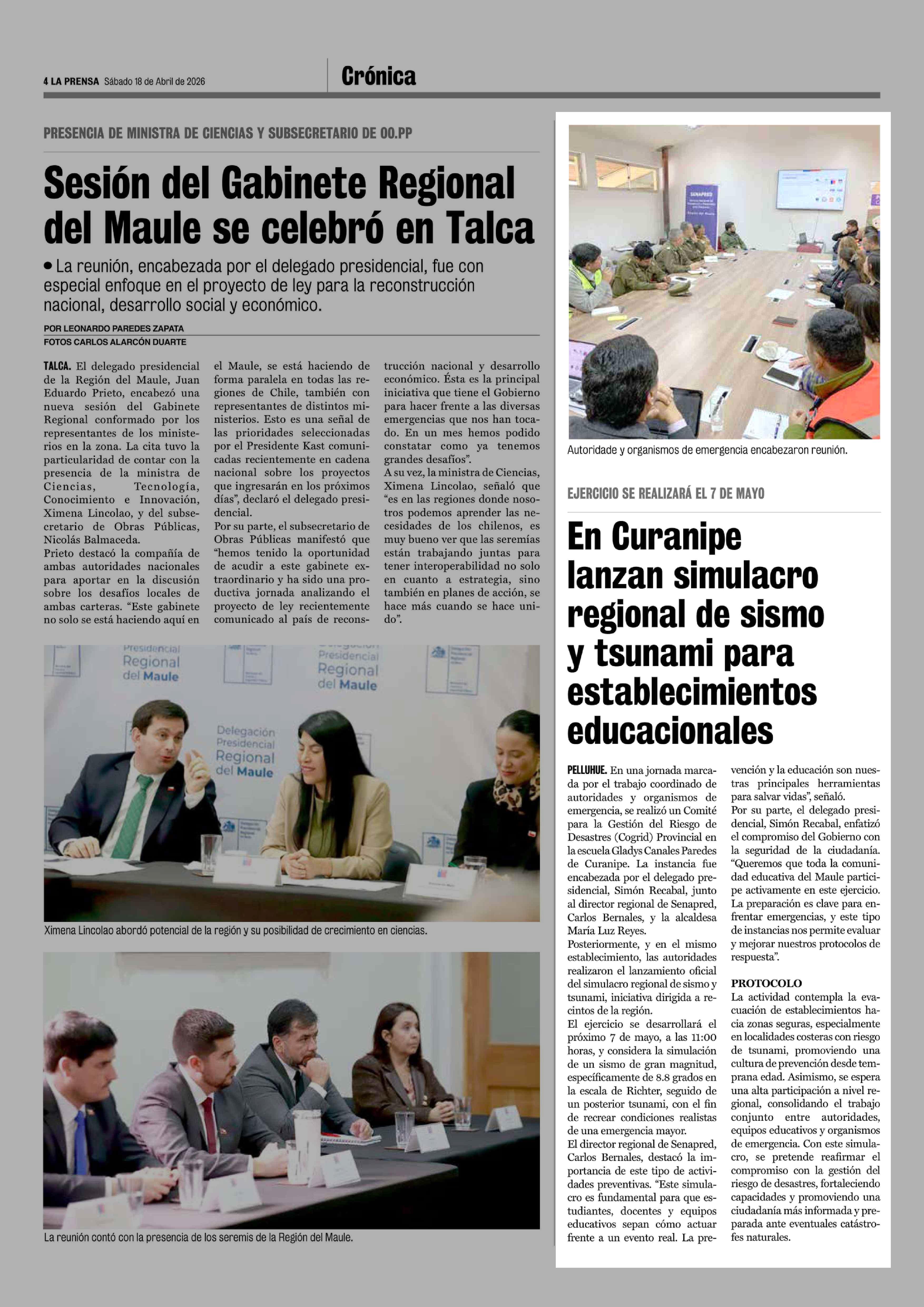 | Fecha: | 18-04-2026 | Sector: | Noticia general | Región: | Región del Maule |
