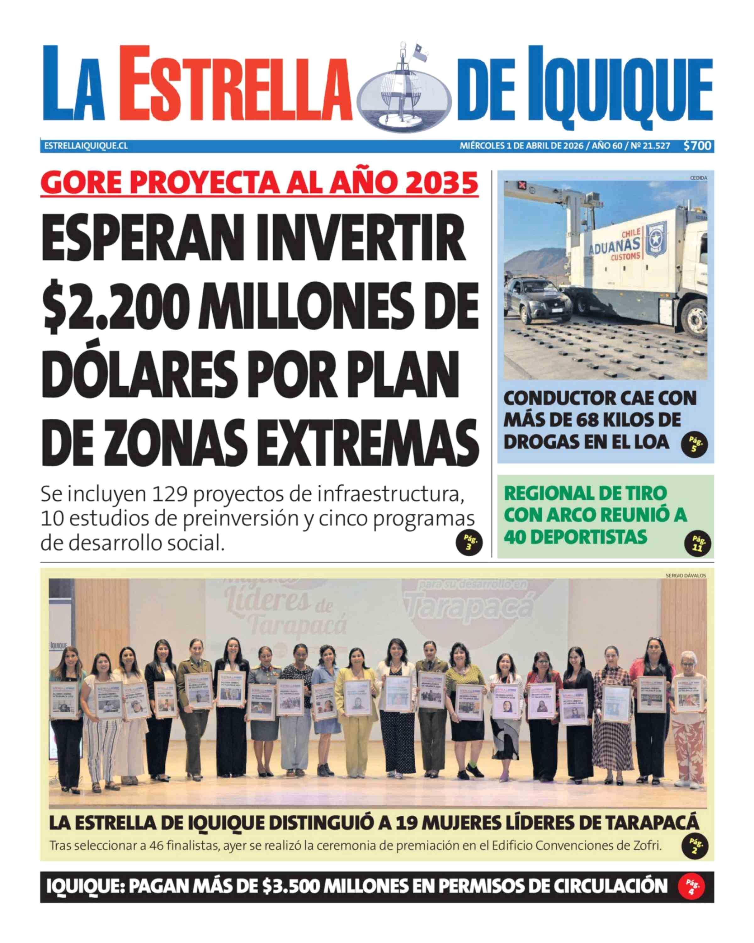 | Fecha: | 01-04-2026 | Sector: | Portada | Región: | Región de Tarapacá |