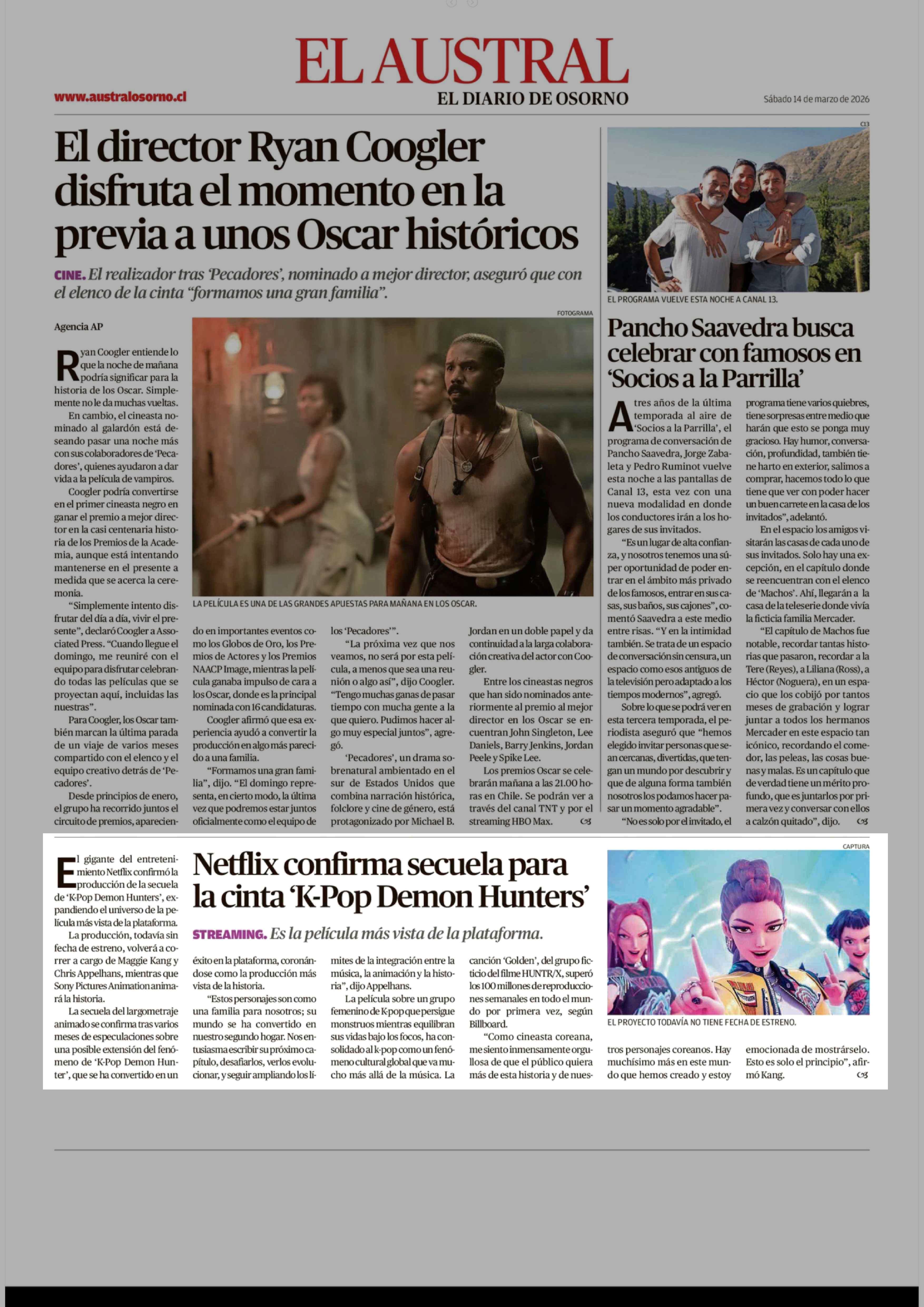 Netflix confirma secuela para la cinta 'K-Pop Demon Hunters' 14-03-2026 El Austral de Osorno |