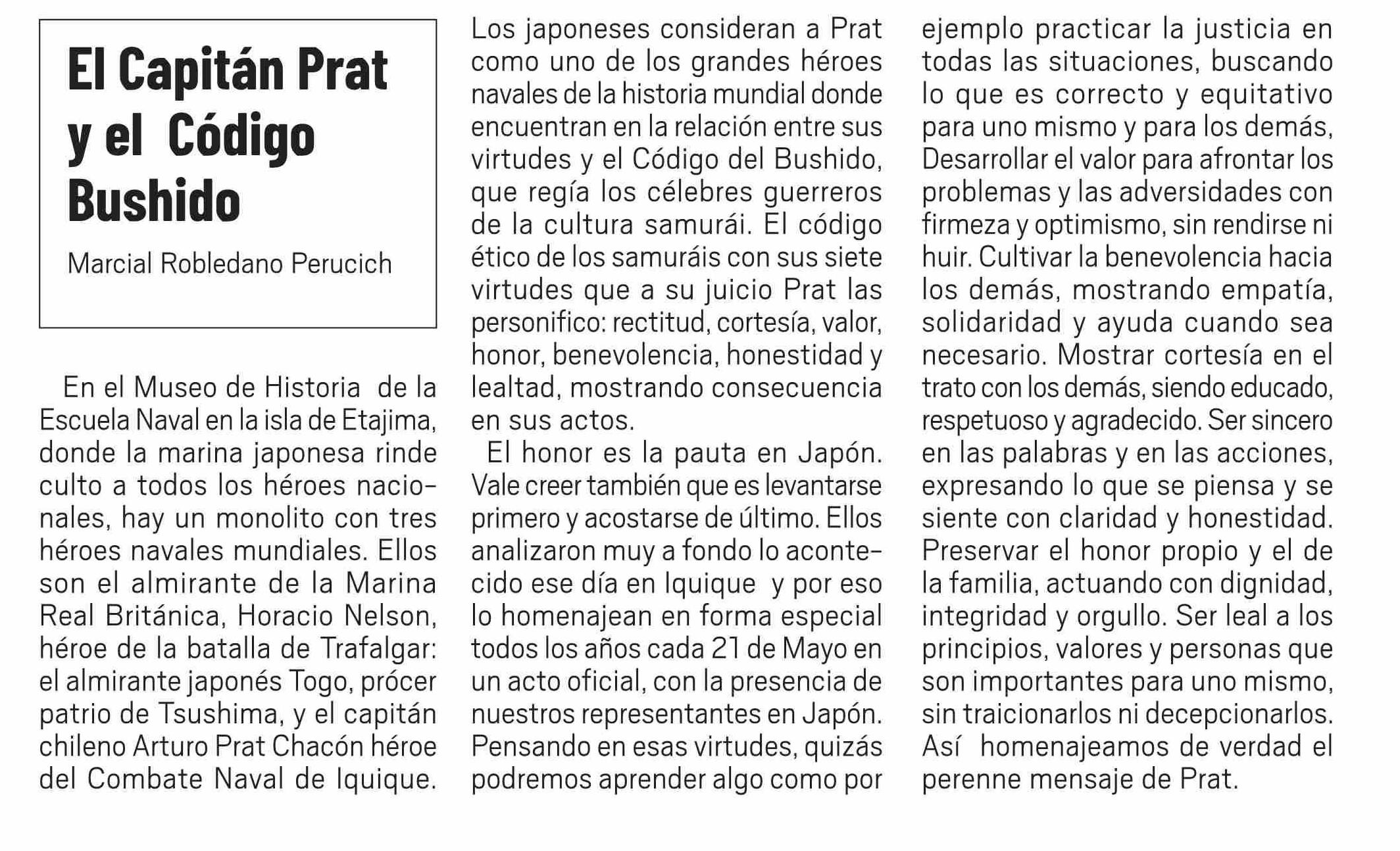 El Capitán Prat y el Código Bushido 20-05-2024 El Día |