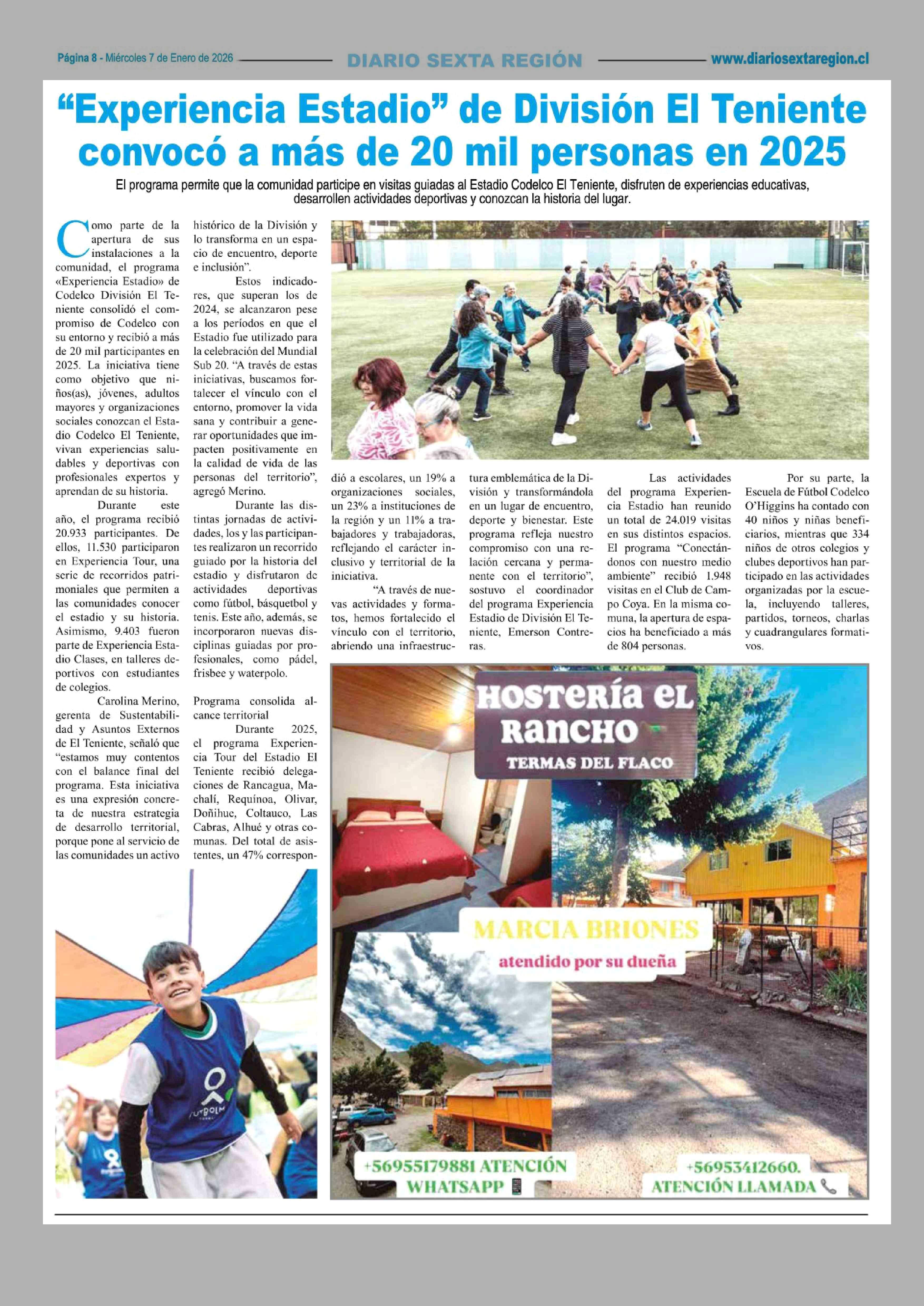 Título: "Experiencia Estadio" de División El Teniente convocó a más de 20 mil personas en 2025