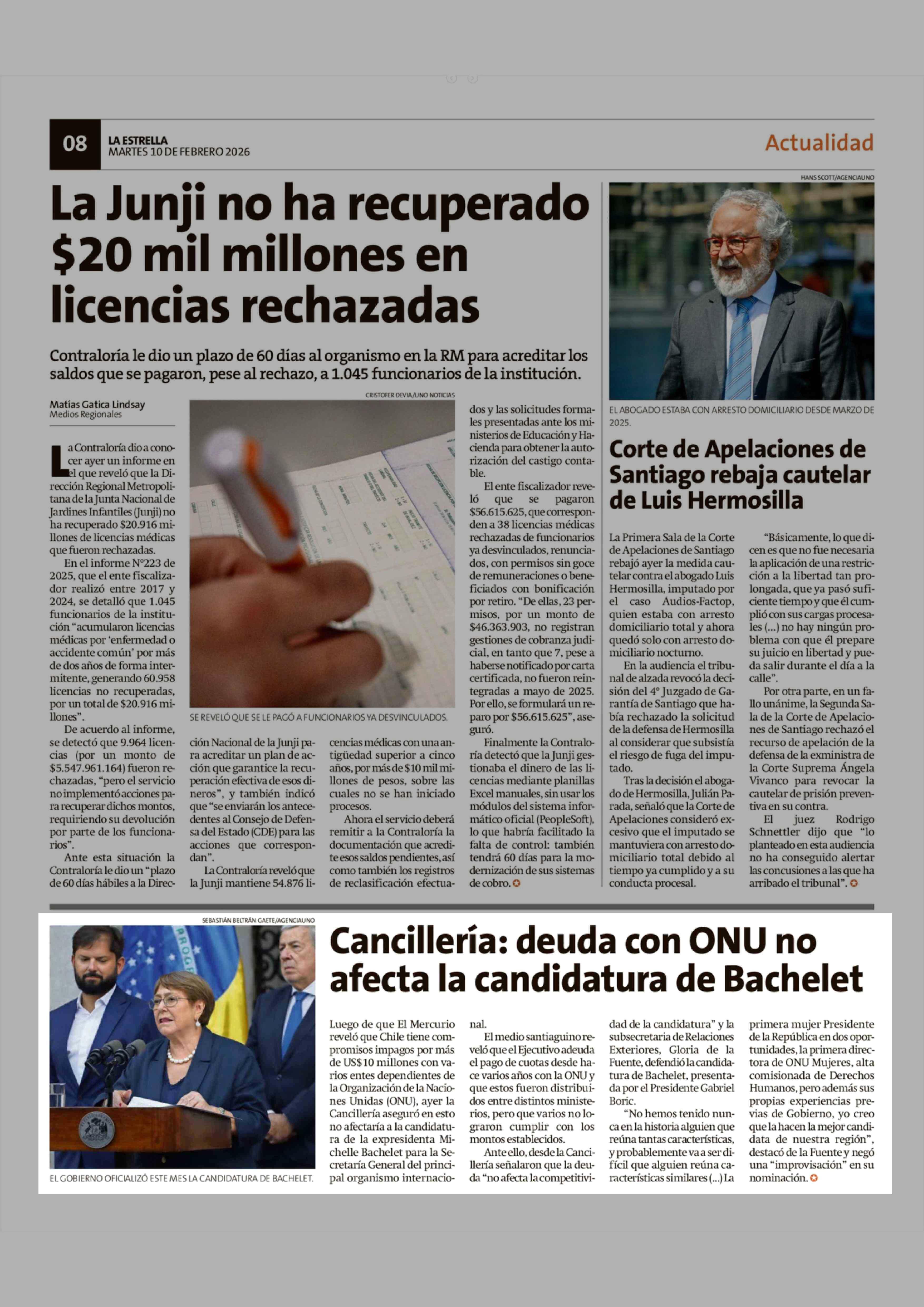 Cancillería: deuda con ONU no afecta la candidatura de Bachelet 10-02-2026 La Estrella de Chiloé |