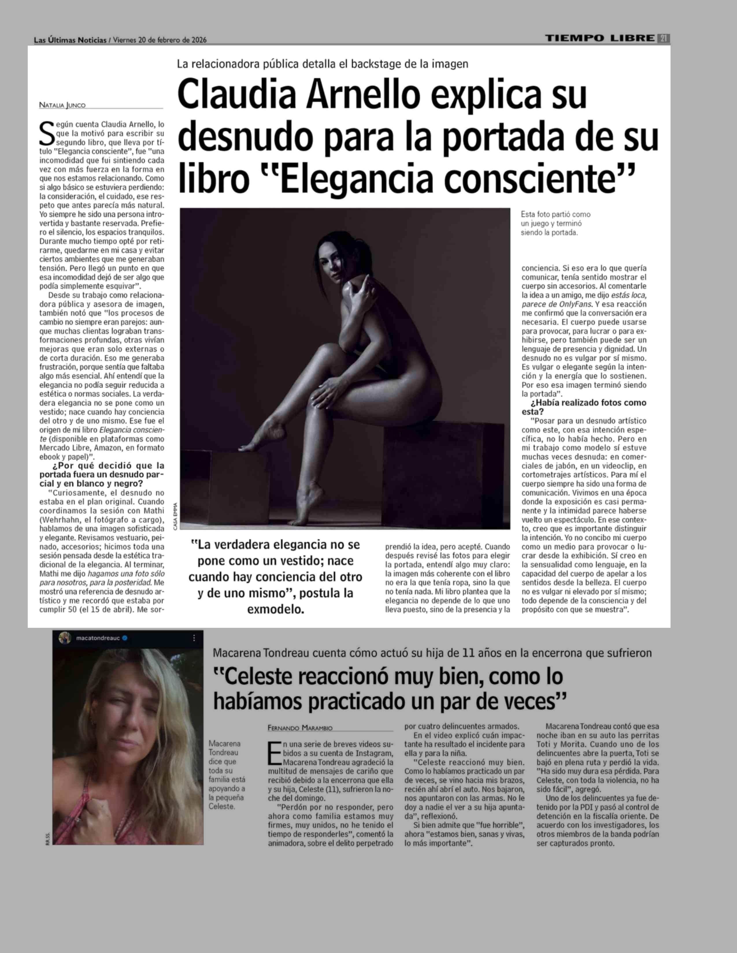 Título: Claudia Arnello explica su desnudo para la portada de su libro "Elegancia consciente"