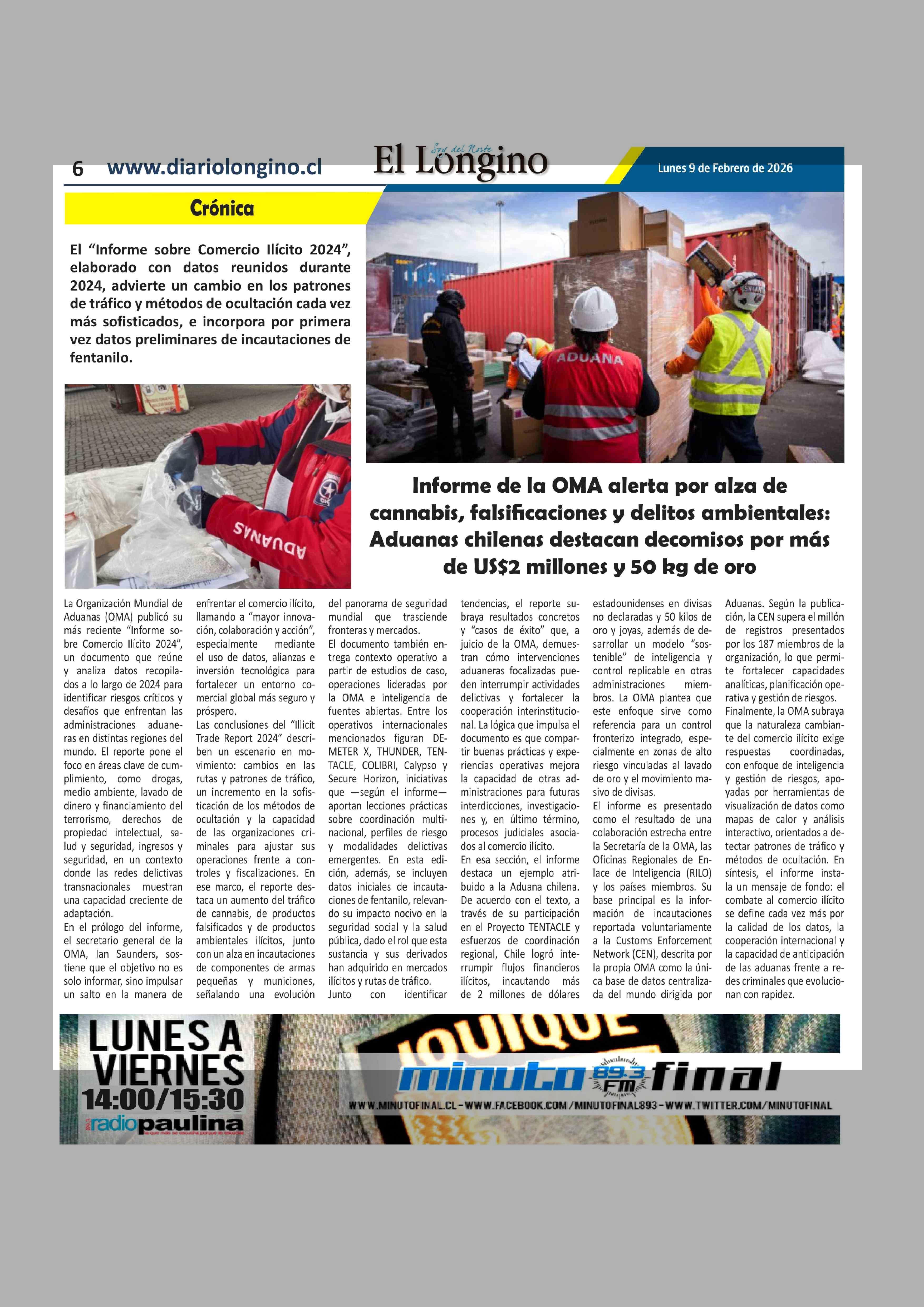 | Título: | Informe de la OMA alerta por alza de cannabis, falsificaciones y delitos ambientales |