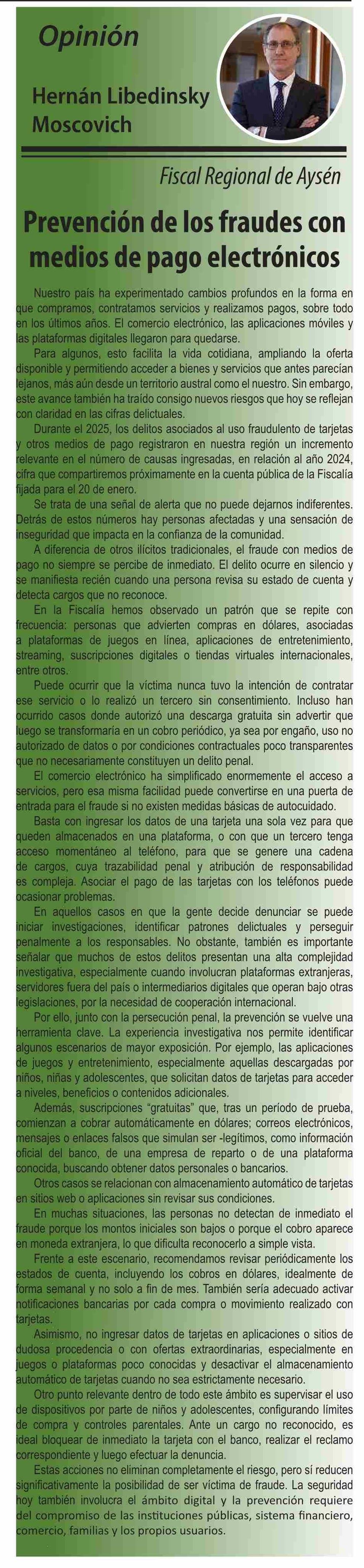 Columnas de Opinión: Prevención de los fraudes con medios de pago electrónicos 09-01-2026 El Divisadero |
