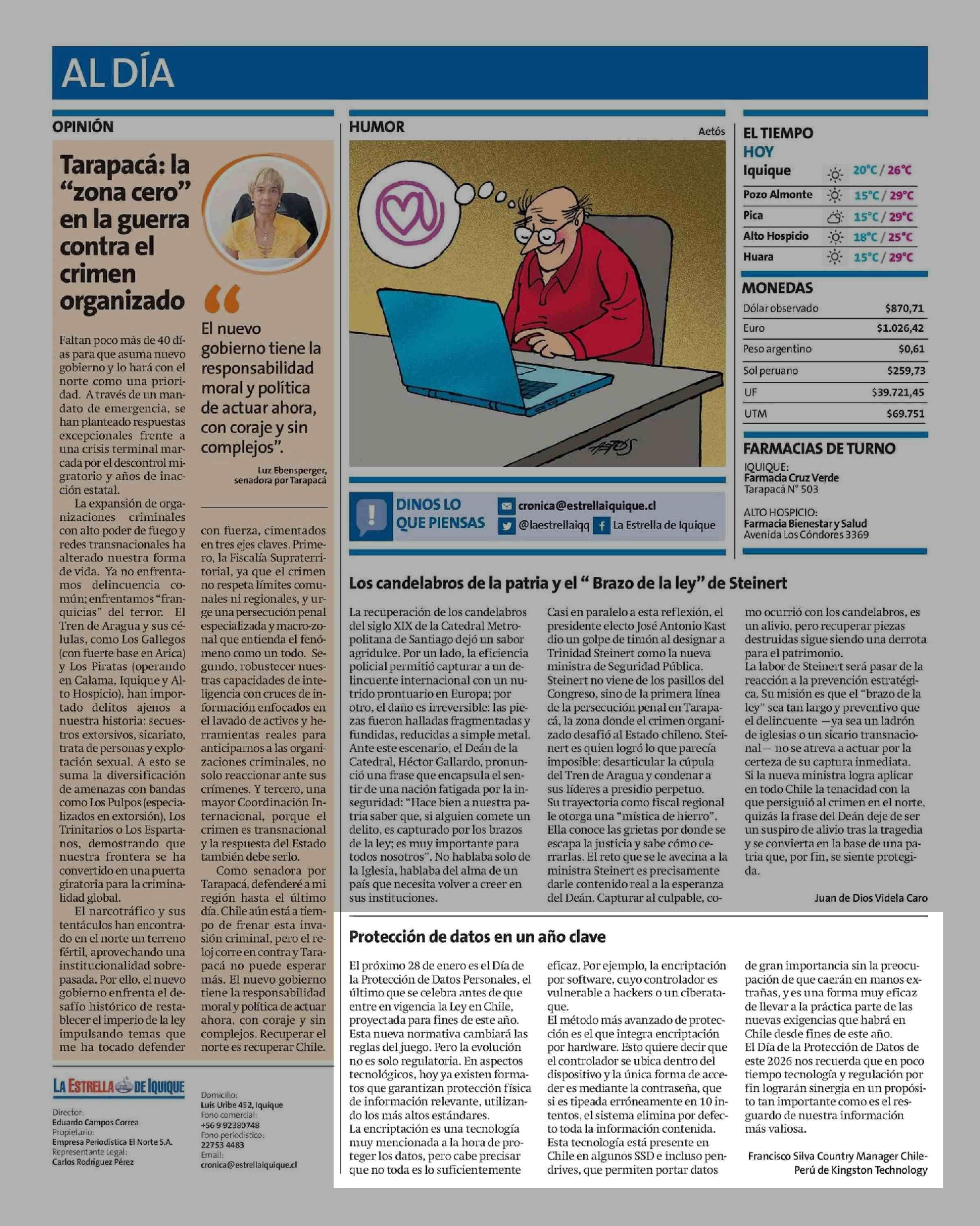 Columnas de Opinión: Protección de datos en un año clave 25-01-2026 La Estrella de Iquique |