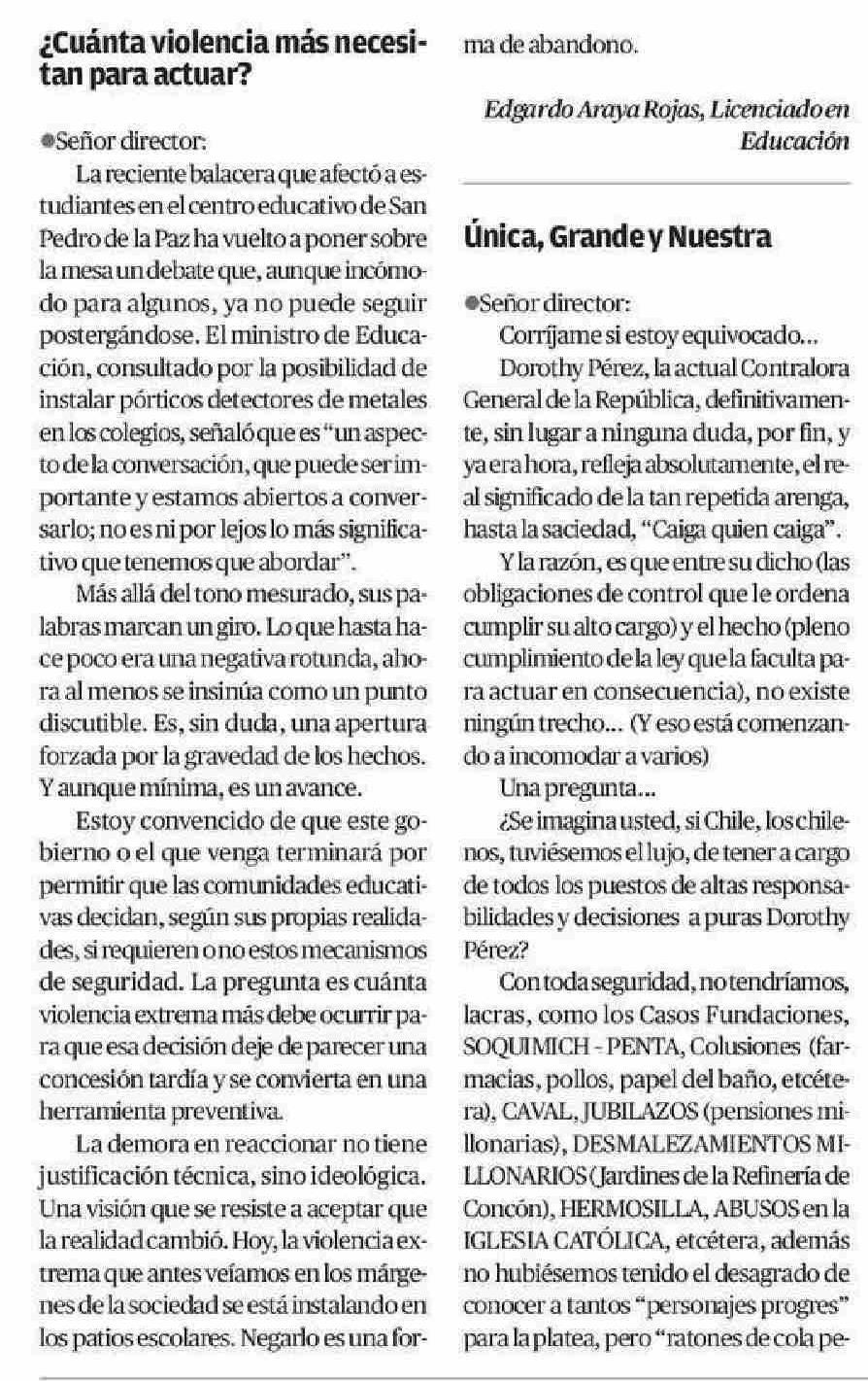 CARTAS: ¿Cuánta violencia más necesitan para actuar? 02-06-2025 El Diario de Atacama |