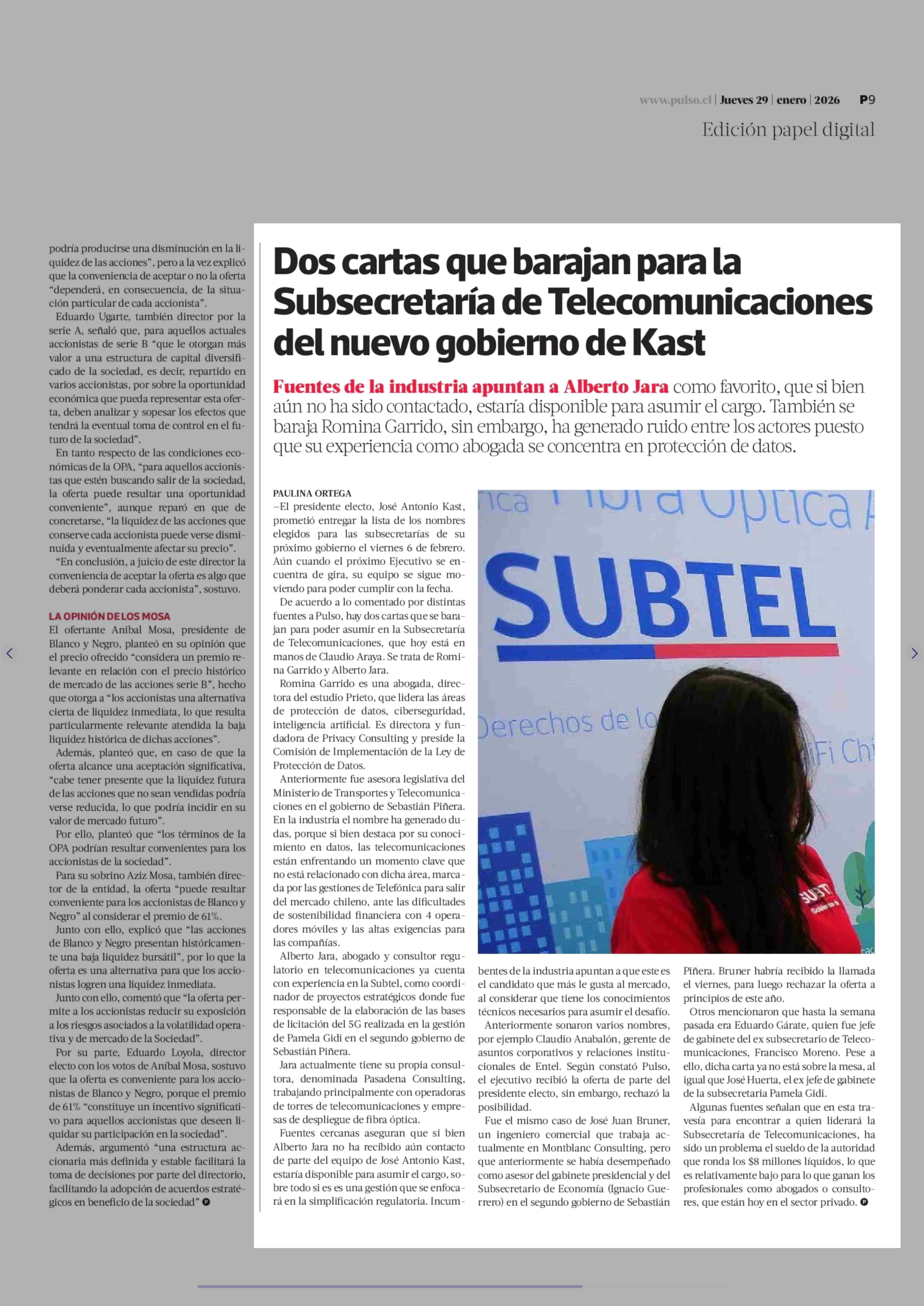 Título: Dos cartas que barajan para la Subsecretaría de Telecomunicaciones del nuevo gobierno de Kast
