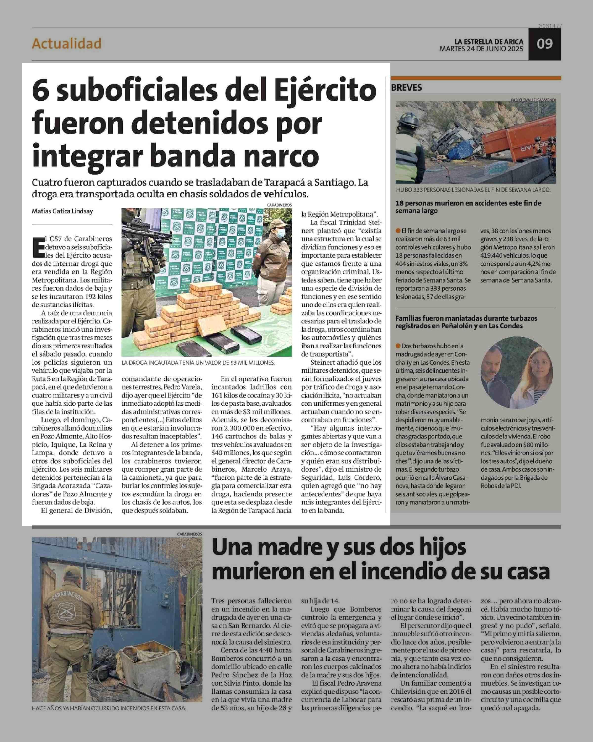 6 Suboficiales del Ejército integrar banda narco fueron detenidos por 24-06-2025 La Estrella de Arica |