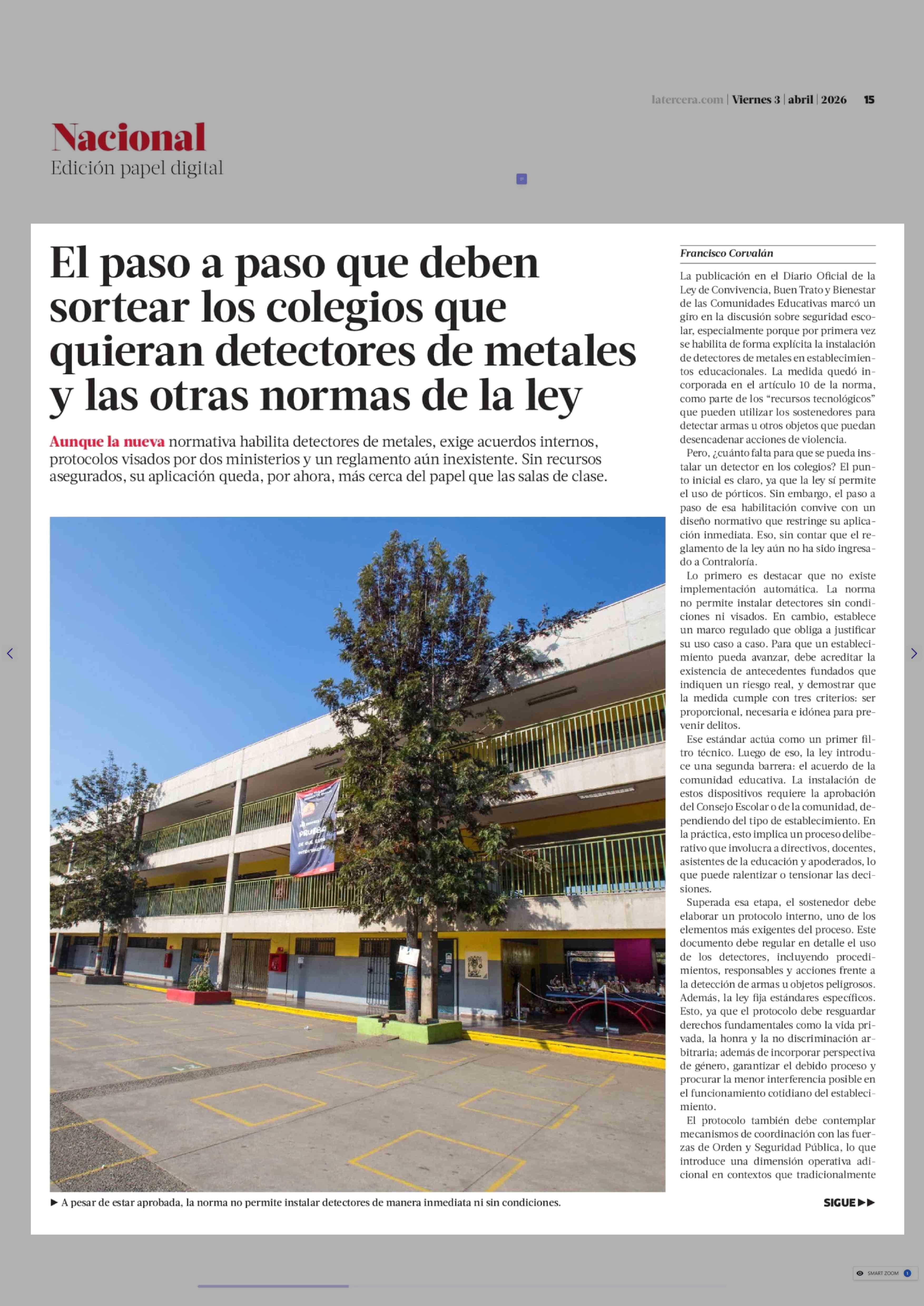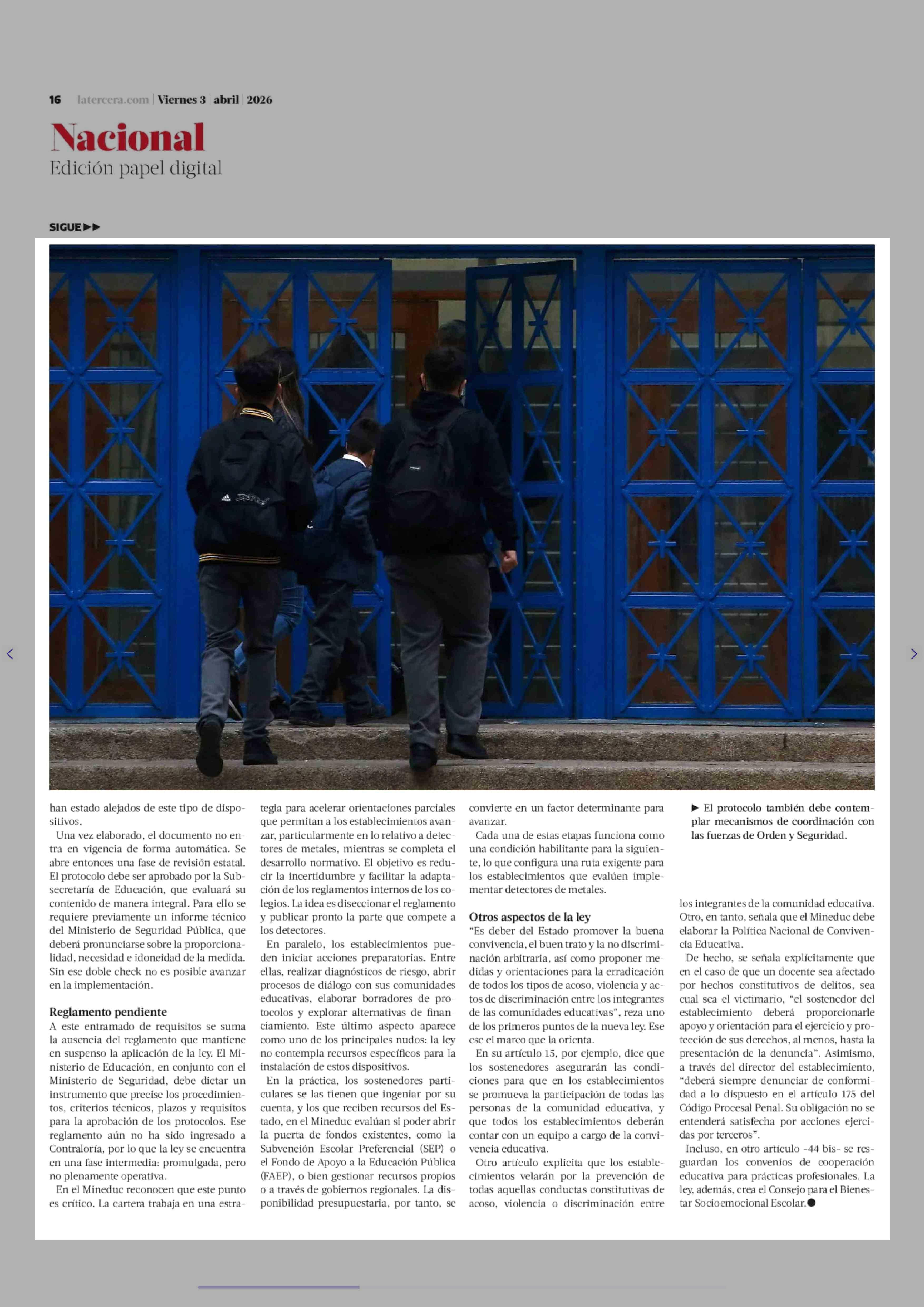 Título: El paso a paso que deben sortear los colegios que quieran detectores de metales y las otras normas de la ley
