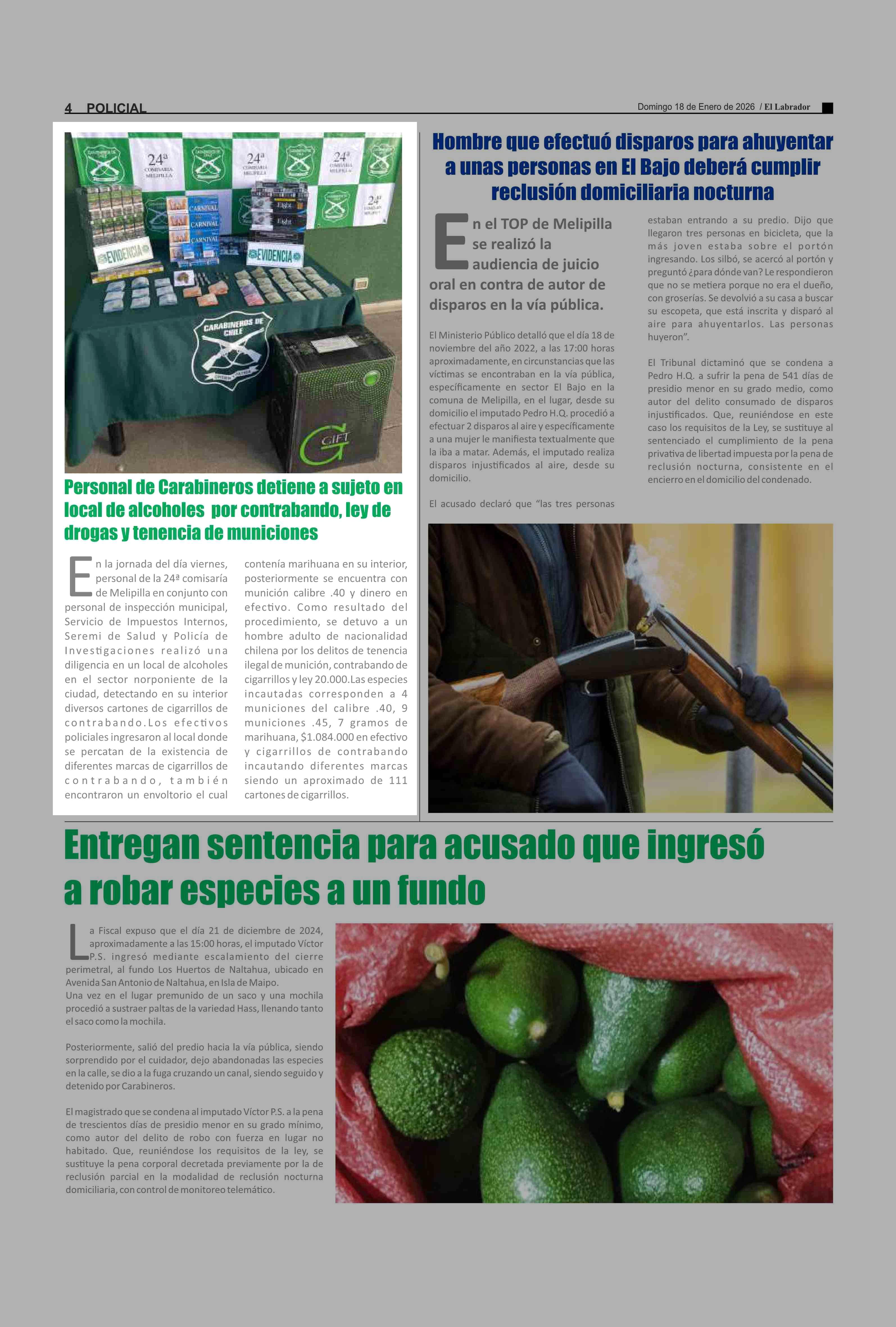 Personal de Carabineros detiene a sujeto en local de alcoholes por contrabando, ley de drogas y tenencia de municiones 18-01-2026 El Labrador |