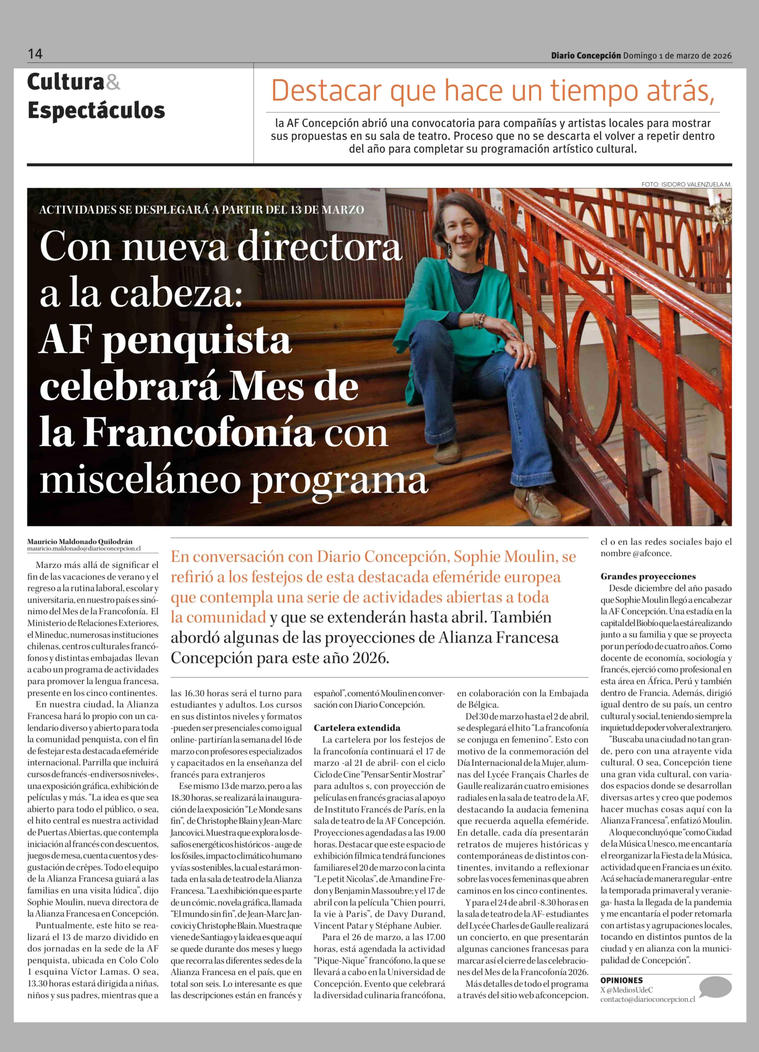 Con nueva directora a la cabeza: AF penquista celebrará Mes de la Francofonía con miscelaneo programa 01-03-2026 Diario Concepción |