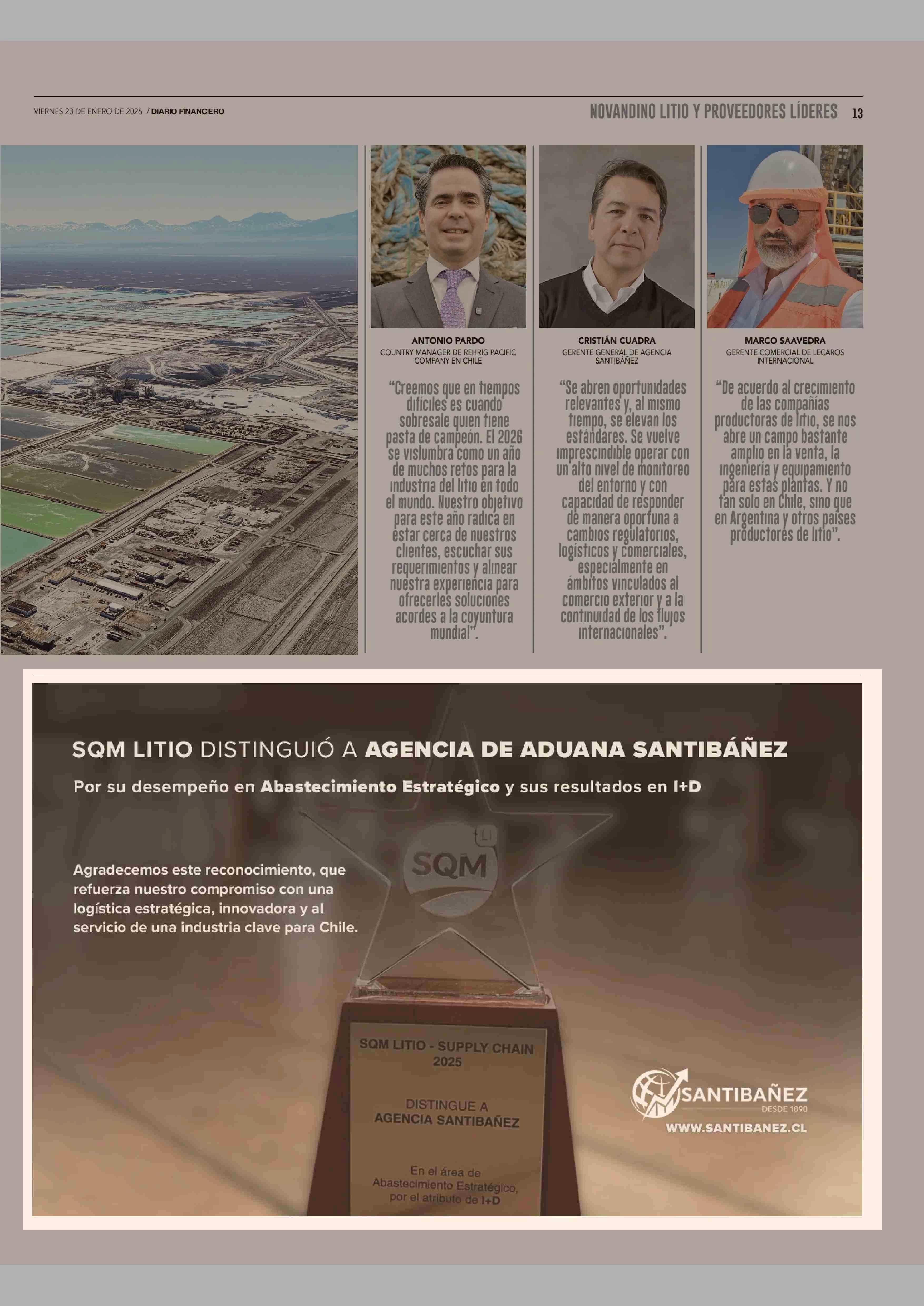 Aviso Publicitario: AGENCIA DE ADUANA SANTIBÁÑEZ 23-01-2026 Diario Financiero |